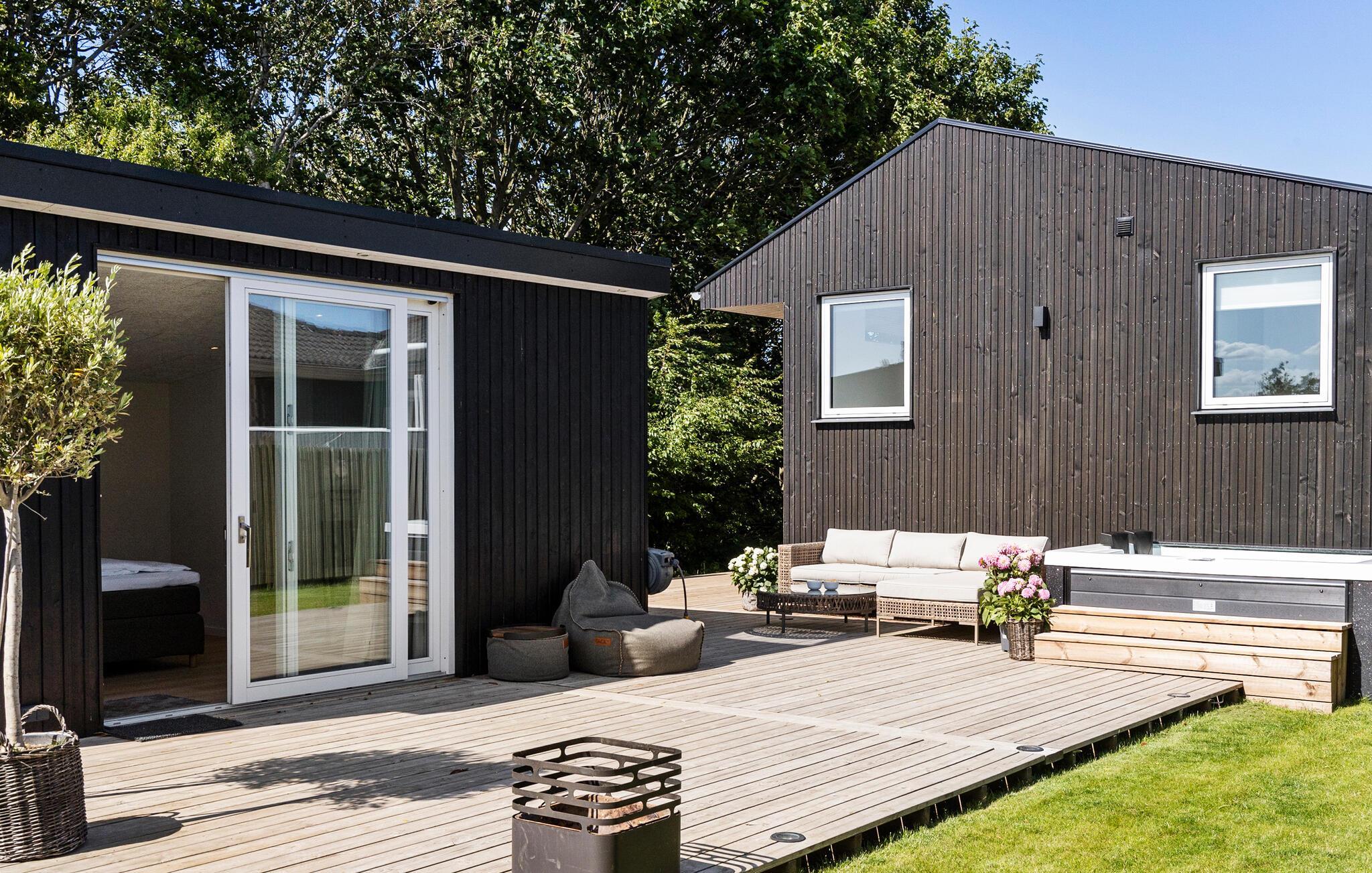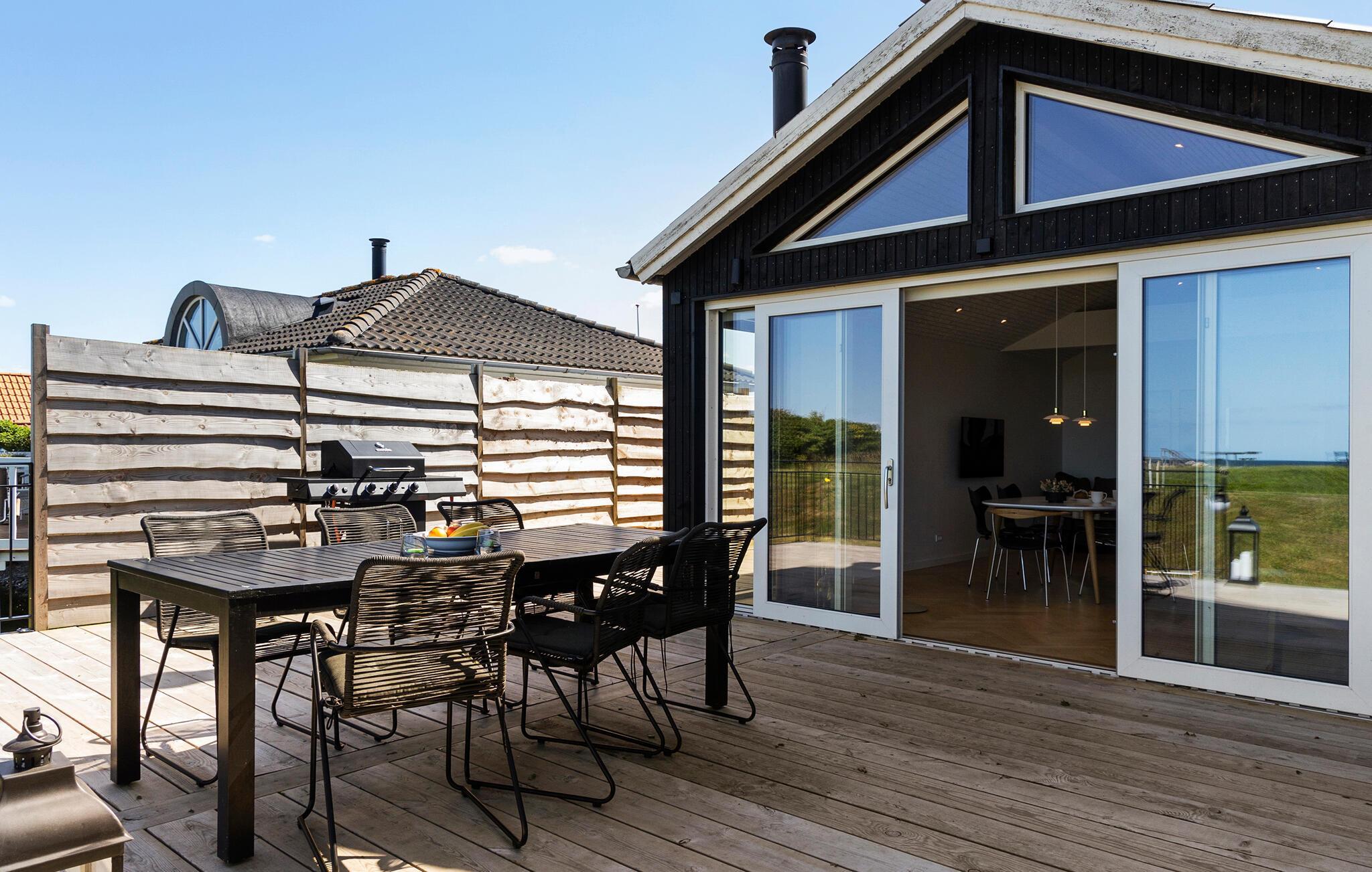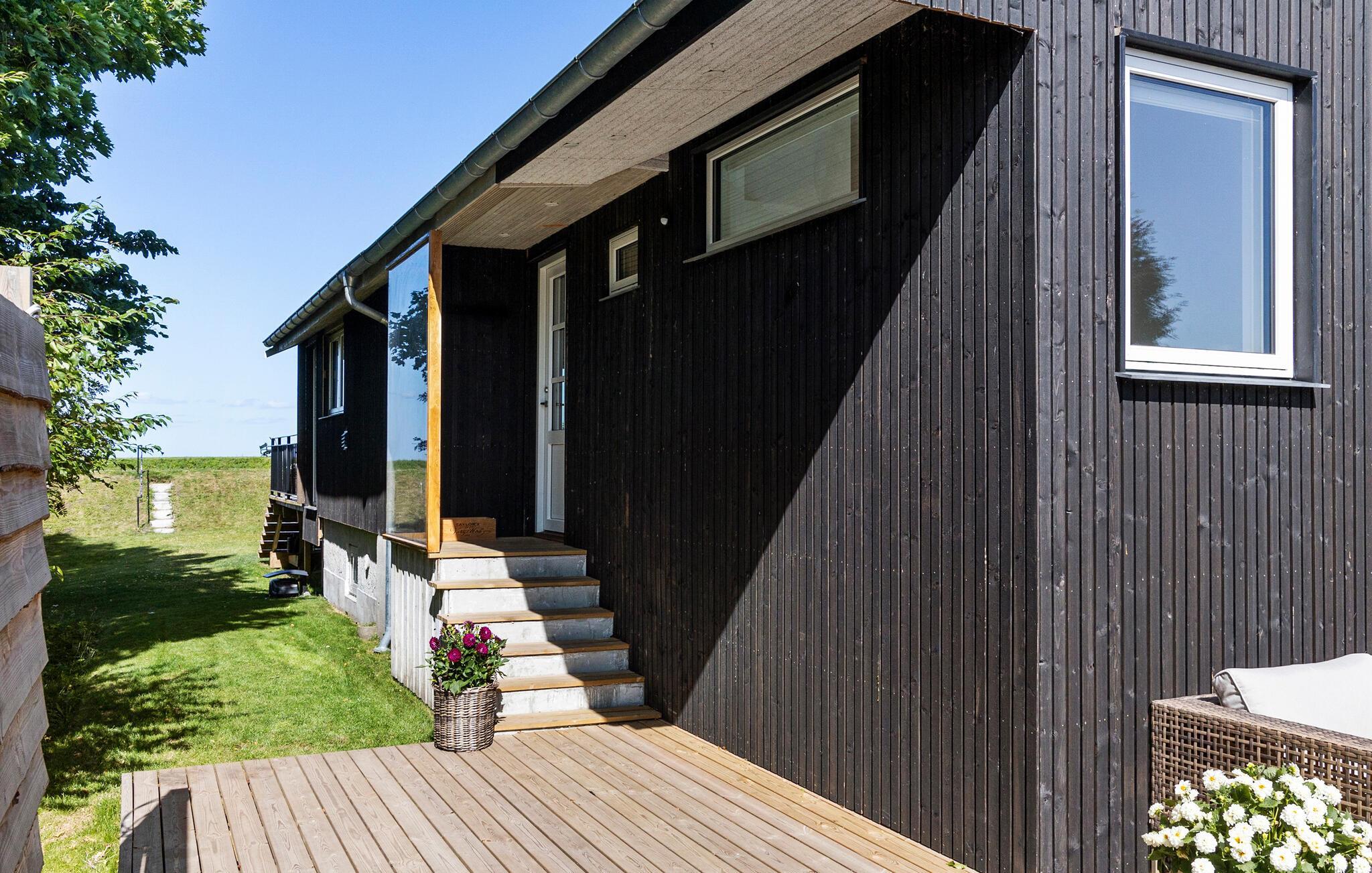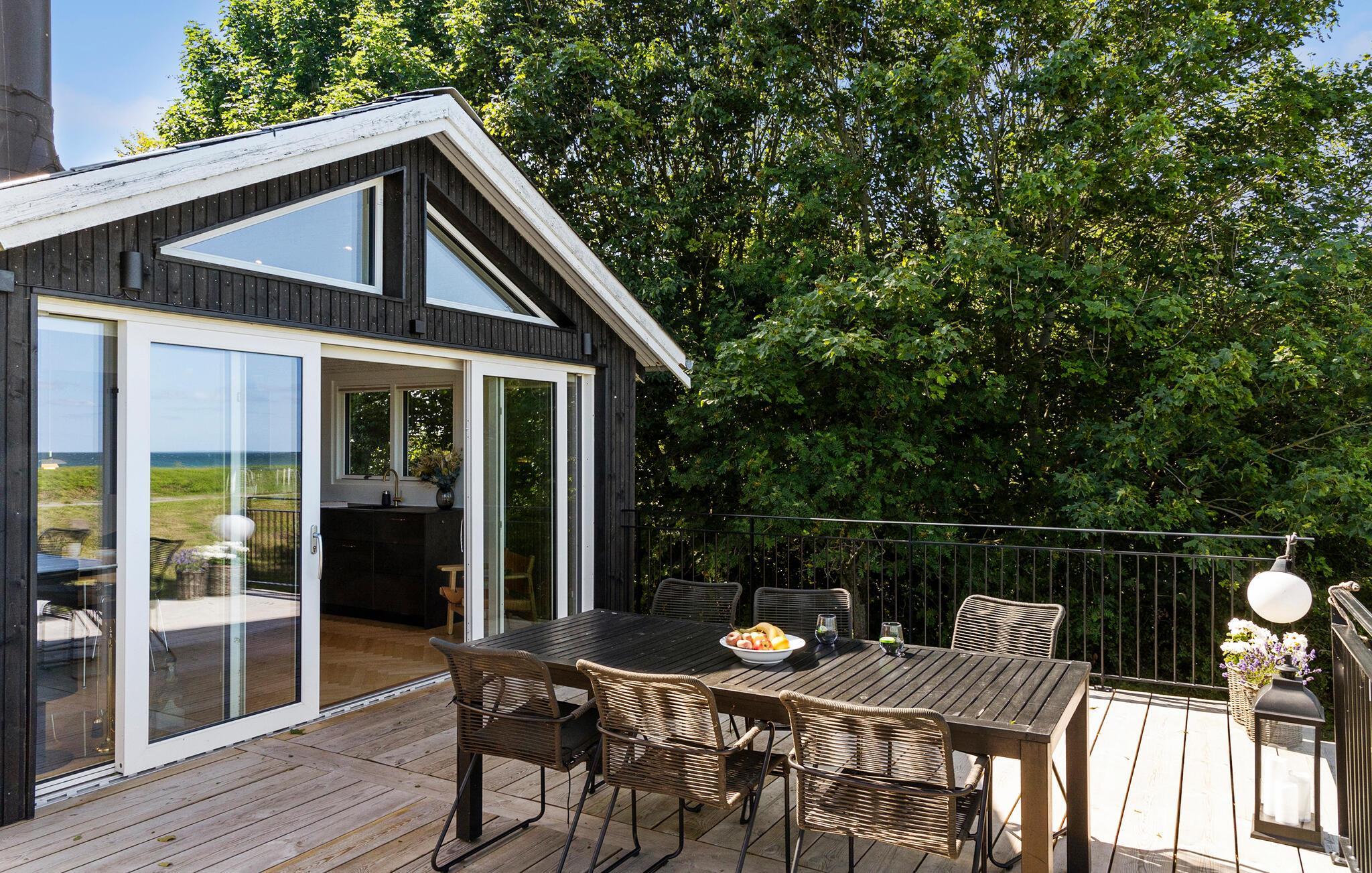 Moderne feriehus med panoramaudsigt over havet og direkte adgang til Jørgensø Strand.