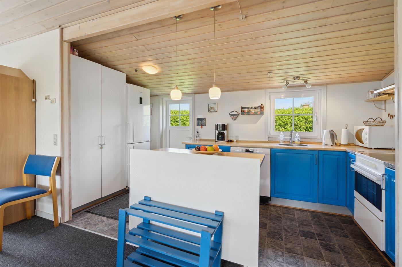 Køkkenet er udstyret med 1 køleskab. Der er 4 keramiske kogeplader, varmluftovn, mikrobølgeovn samt opvaskemaskine.
