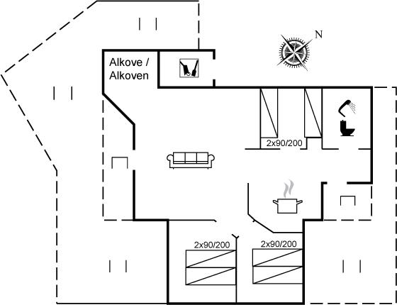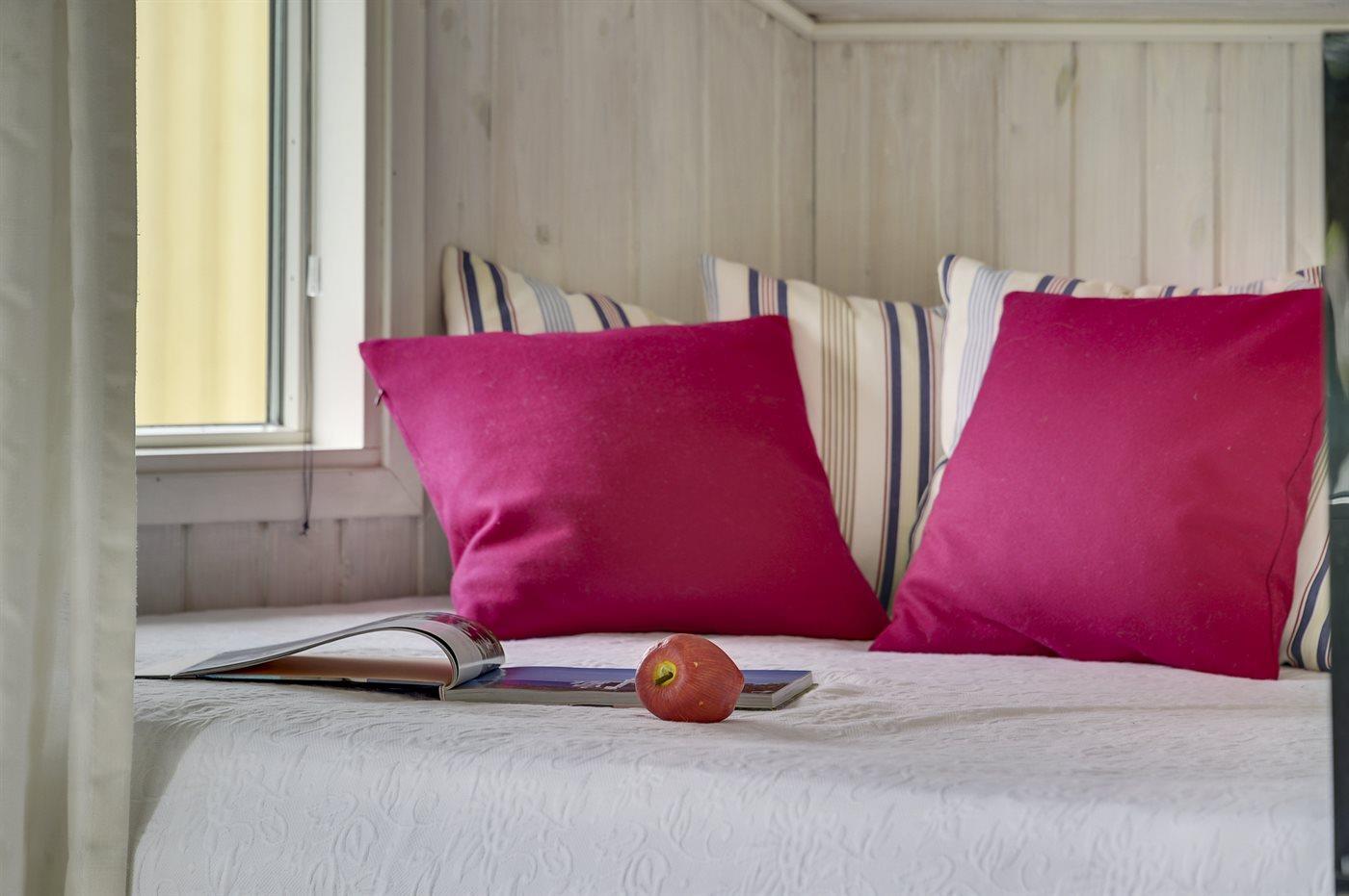 Der er i alt 3 soveværelser. Sovepladserne fordeler sig på: 4 sovepladser i dobbeltsenge. 2 sovepladser i enkeltsenge.
