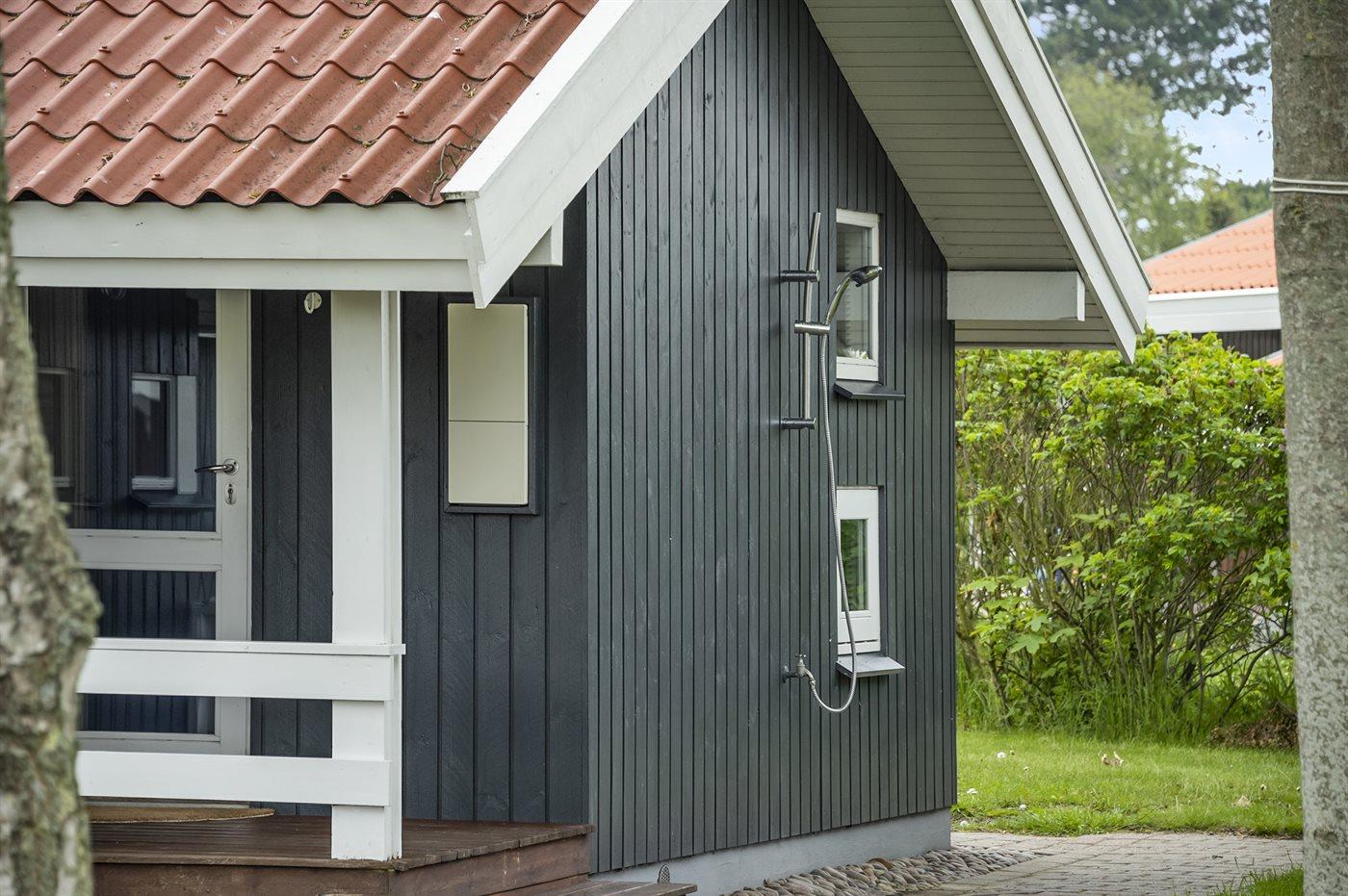 Ferieboligen er beliggende på en 1286 m² stor naturgrund. Der er 150 m til havet. Nærmeste forretning er beliggende i en afstand af 3000 m. Til ferieboligen hører 50 m² terrasseareal. Desuden er der 10 m² overdækket terrasse. Der er redskabsrum. Parkering ved ferieboligen.