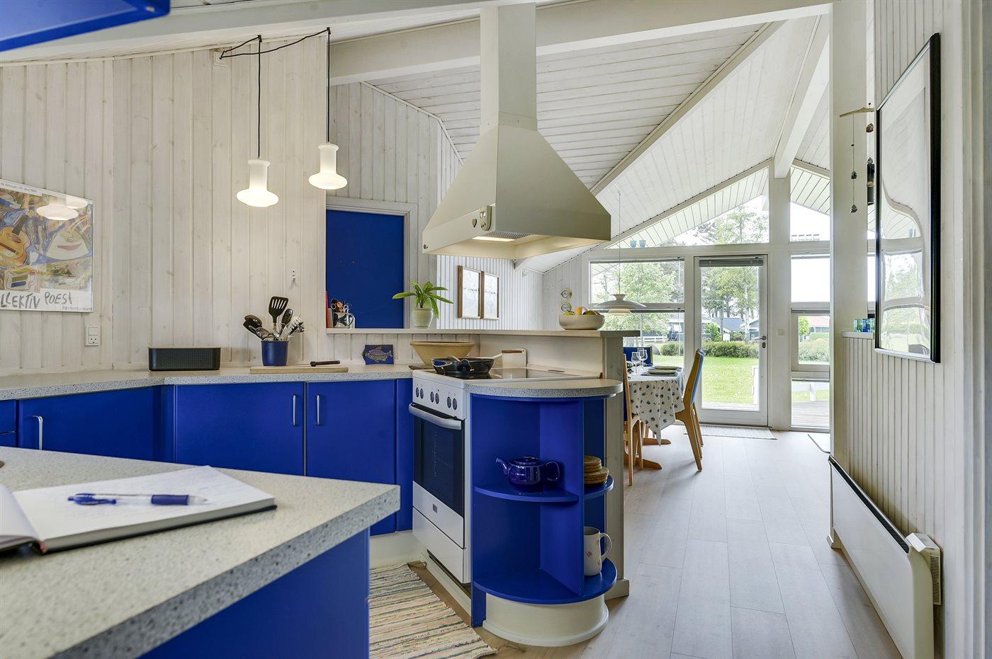 Køkkenet er udstyret med 1 køleskab. Der er 4 keramiske kogeplader, bageovn samt opvaskemaskine.