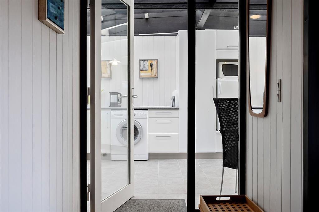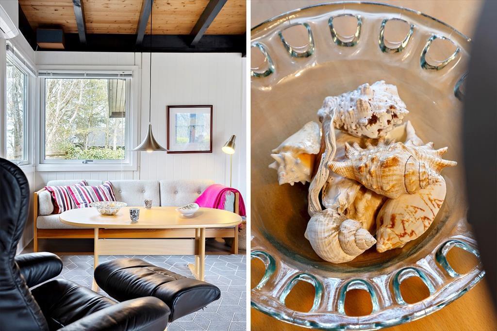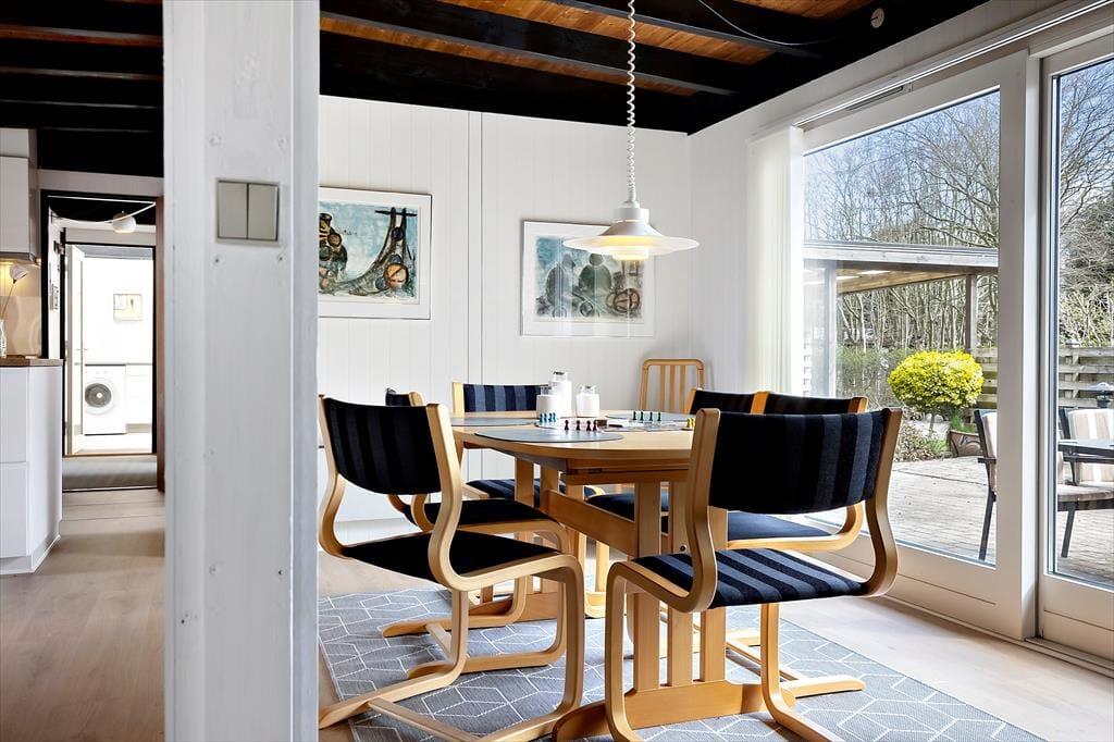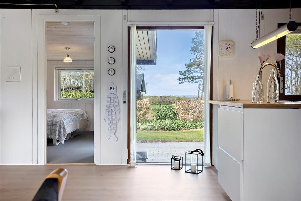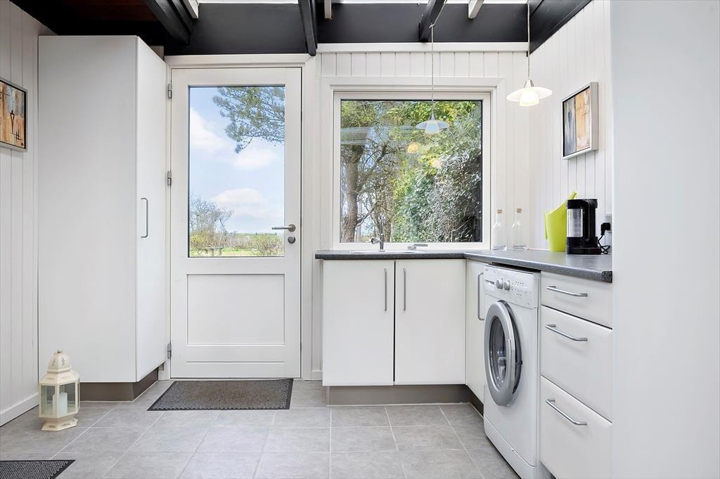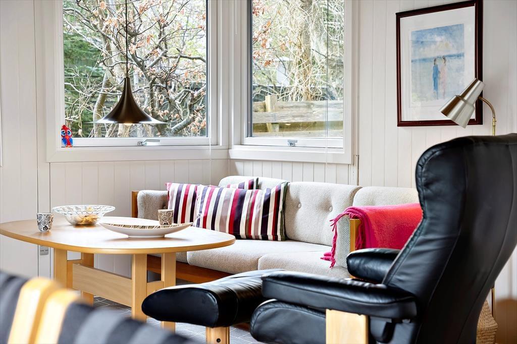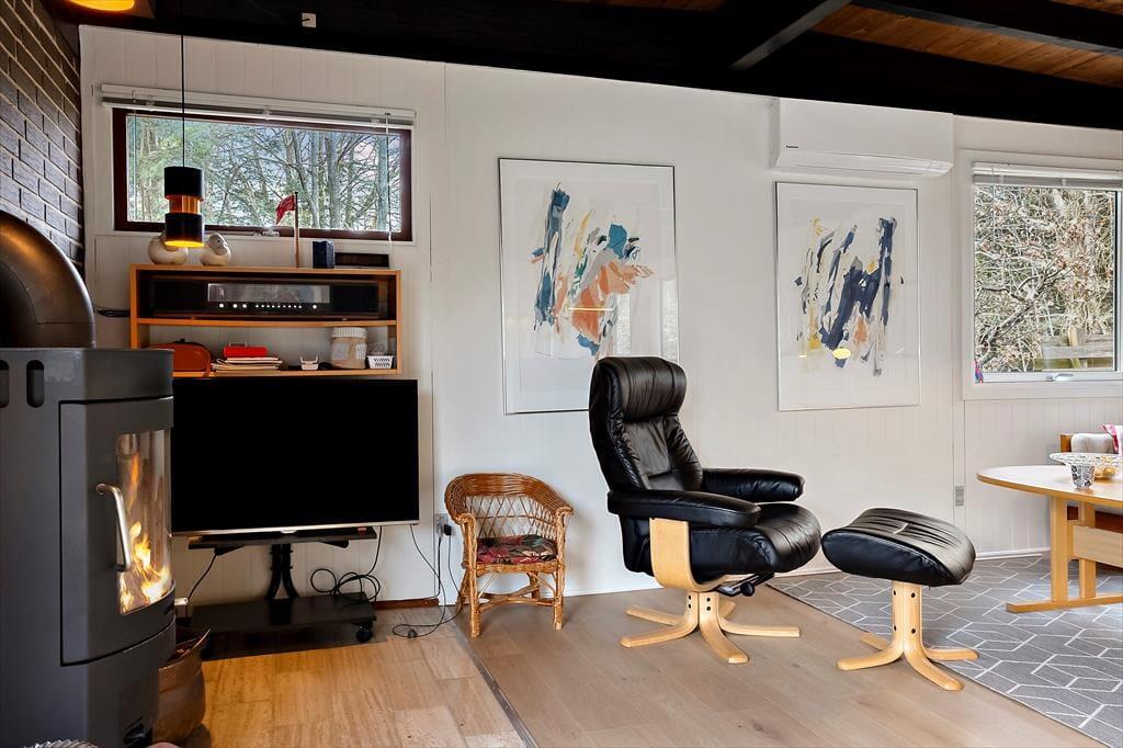 Når du træder ind i sommerhuset, bliver du mødt af en indbydende atmosfære, hvor hver detalje er designet til at fremme en hyggelig ferieoplevelse. Den lyse og åbne indretning giver masser af plads til både afslapning og samvær, og den varme brændeovn tilføjer ekstra hygge, når du sidder sammen foran flammerne med en god bog eller et spil brætspil. Her er den perfekte balance mellem funktionalitet og komfort, hvilket gør, at du hurtigt føler dig hjemme. Fra den åbne stue er der nem adgang til både køkkenet og spiseområdet, hvor du kan tilberede lækre måltider og nyde dem sammen med dem, du holder af.