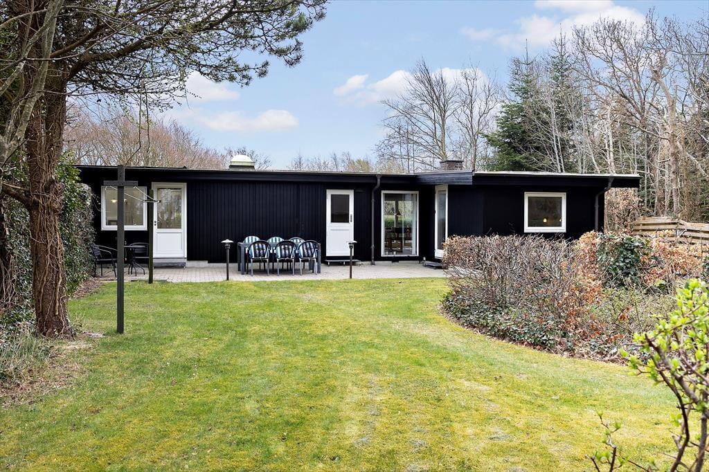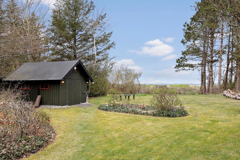 Sommerhusets udendørsområder er en sand oase, der indbyder til både afslapning og leg. Den store terrasse giver masser af muligheder for at nyde de solrige dage, og du kan tage en morgenkaffe i den stille morgenluft eller grille om aftenen, mens solen går ned. Her kan du nyde de rolige stunder i solen eller finde skygge under parasollen, alt efter hvad du ønsker. For dem, der elsker naturen, er stranden kun 150 meter væk, hvor du kan tage en forfriskende dukkert i Limfjorden eller bygge sandslotte med børnene. Uanset om du er til afslapning eller aktivitet, har denne have noget for dig.