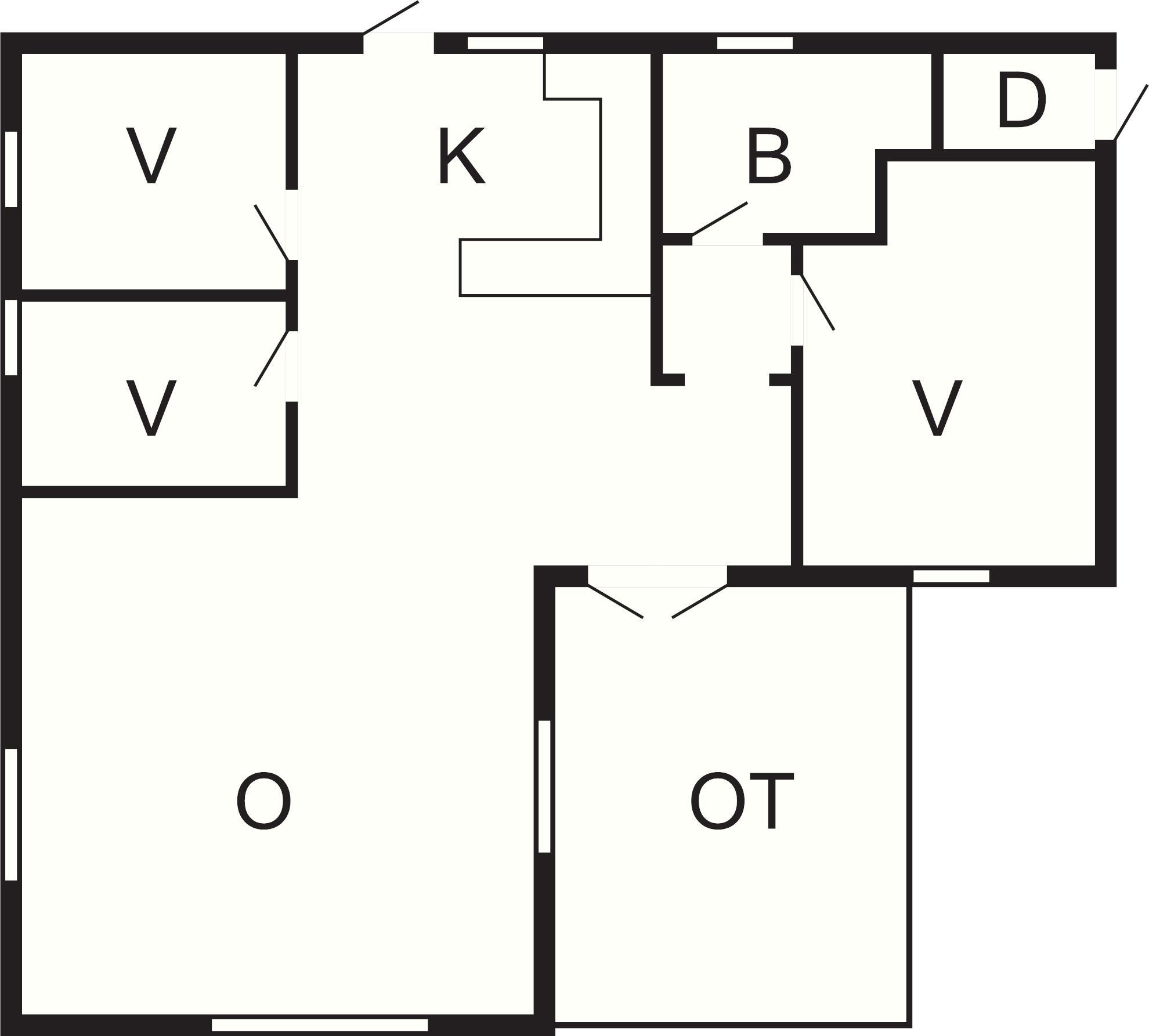 3 Soveværelser: (1DS)+(2K)+(1DS)