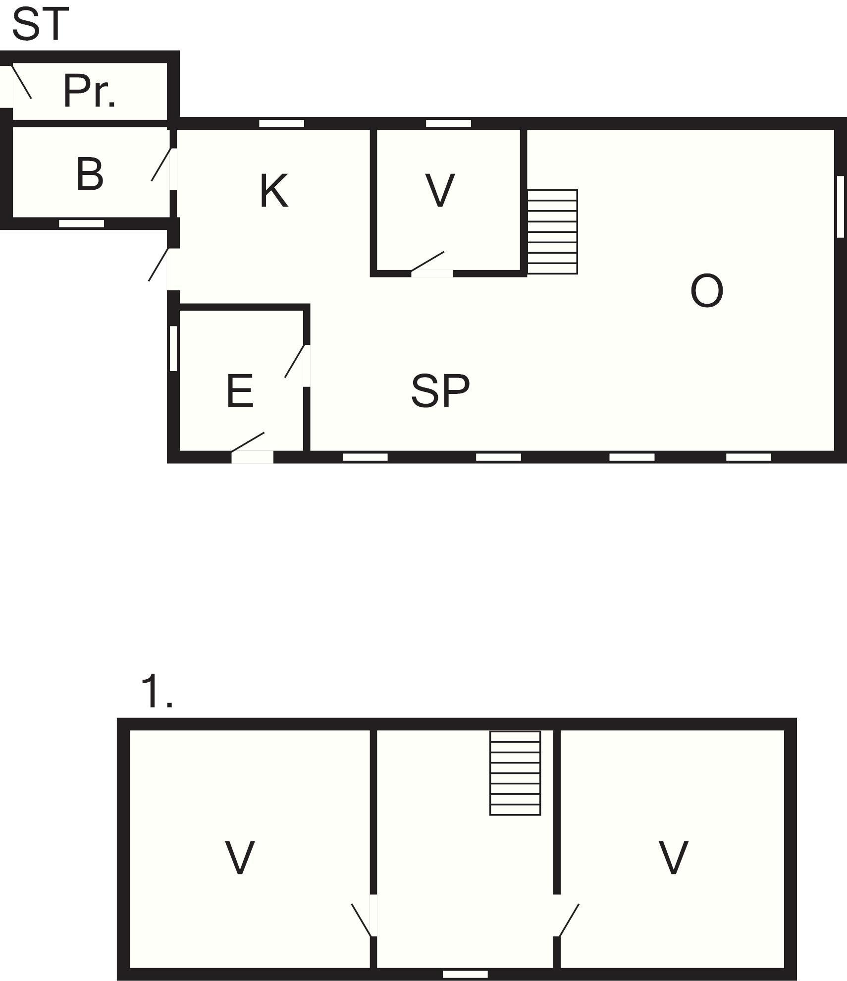 1 Opholdsstue: Brændeovn, tv, høj stol