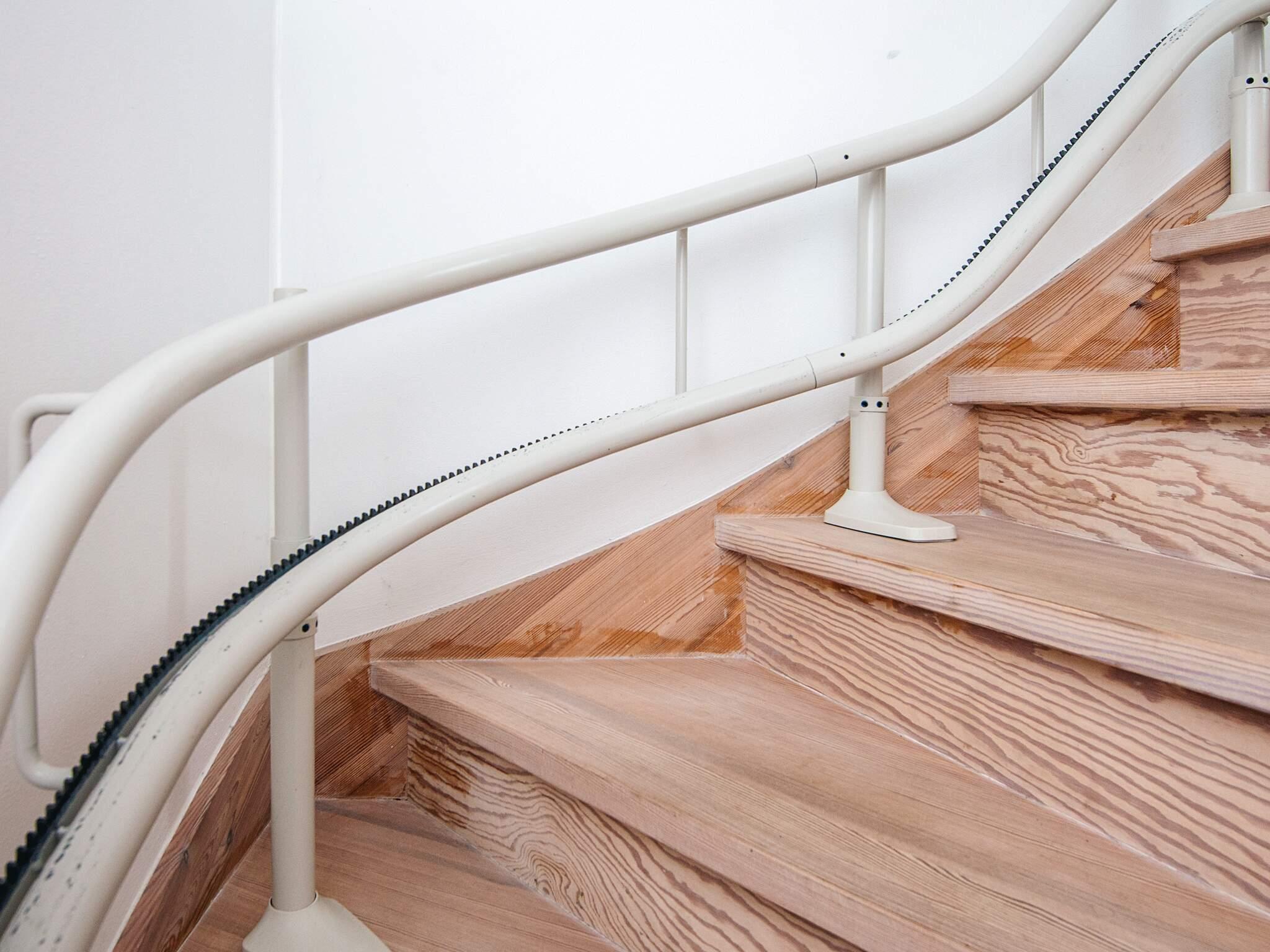 Der er installeret en trappelift fra stueetagen til første sal, der gør den tilgængelig for gangbesværede. På første sal finder du endnu et rummeligt soveværelse med dobbeltseng og et badeværelse med toilet, håndvask, håndklædetørrer og bruseniche. Stue med sofa, brændeovn og tv med Chromecast til streaming af dine egne tjenester. Fra stuen er der udgang til rummelig tagterrasse med loungemøbler. Fra første sal er der desuden adgang til hems.