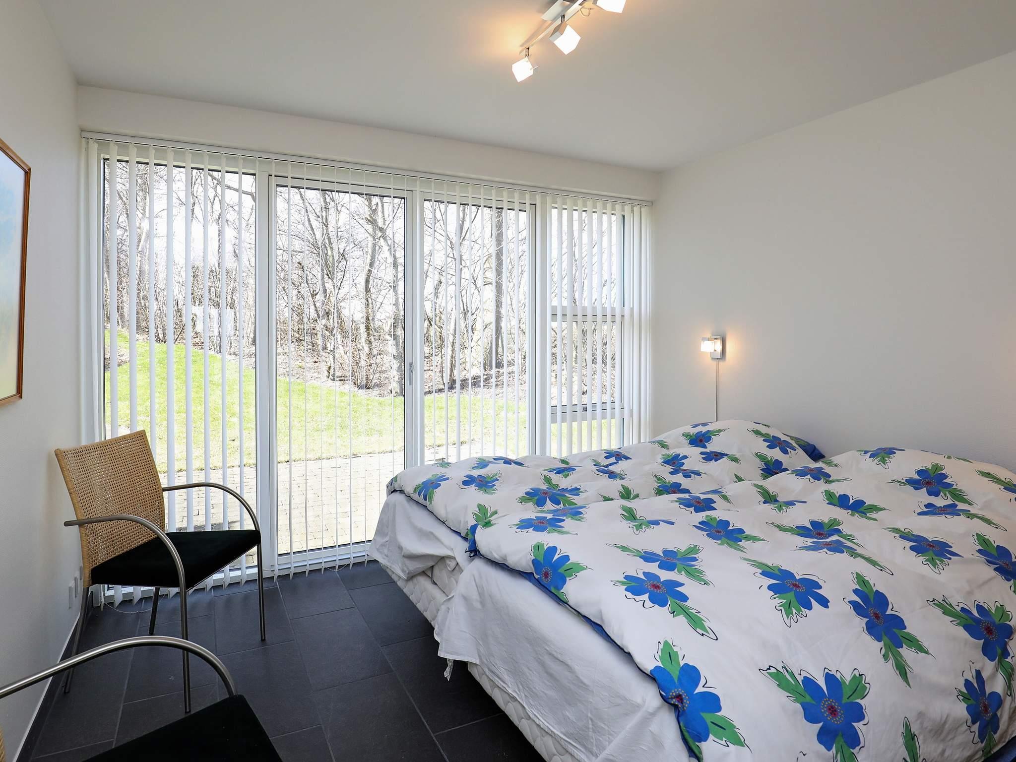 I stueplan findes desuden badeværelse med spabad samt det ene af husets store soveværelser med dobbelt elevationsseng. Godt lysindfald fra de store vinduespartier.