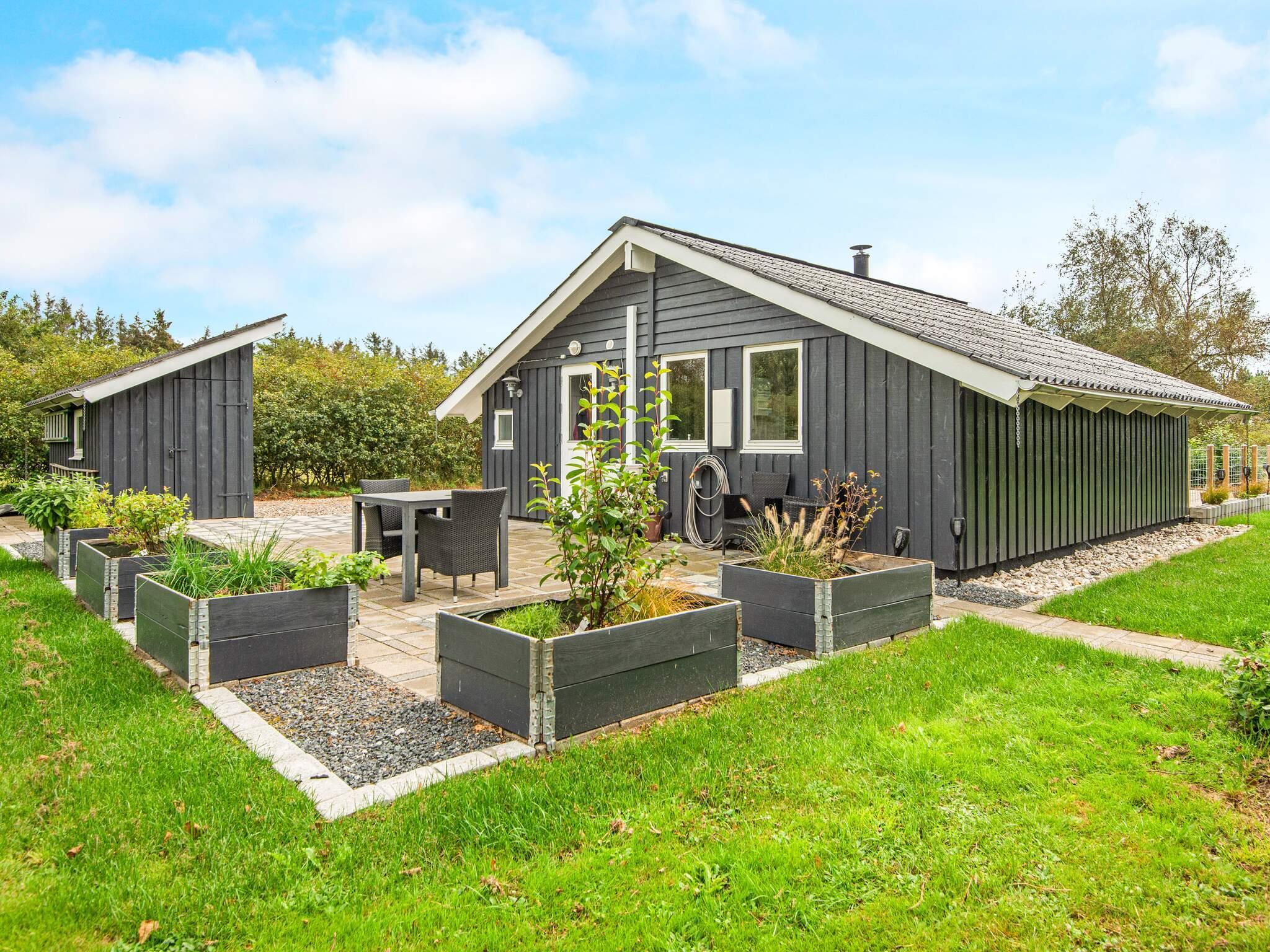 Sommerhus beliggende på lukket vej i naturskønne omgivelser og kun en frisk cykeltur fra det skønne Vesterhavet. Huset er lyst og smagfuldt indrettet med komfortable møbler og værelser med gode elevationssenge. Velindrettet opholdsstue med fladskærm, Family-pakke fra Canal Digital med stort udvalg af kanaler og flere hundrede tyske kanaler samt internet. Brændeovn og et energivenligt klimaanlæg sikrer en behagelig temperatur året rundt. Fra den store terrasse kan I nyde den flotte naturudsigt. Græsplænen er indhegnet, så små hunde frit kan løbe omkring.