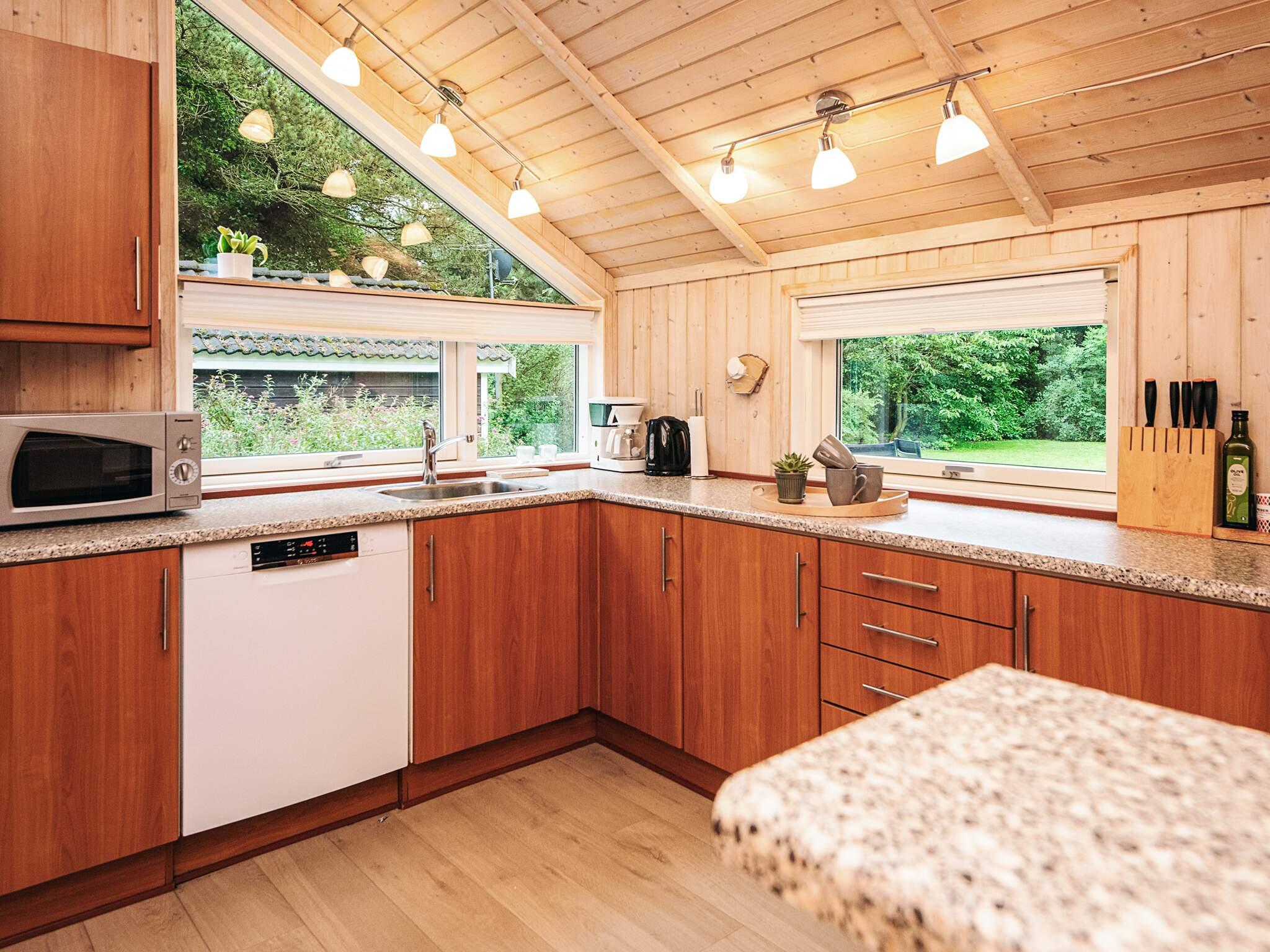 Køkkenafd.: El-komfur, varmt vand, køleskab, fryser 100 - 139 l, mikroovn, kaffemaskine, opvaskemask.