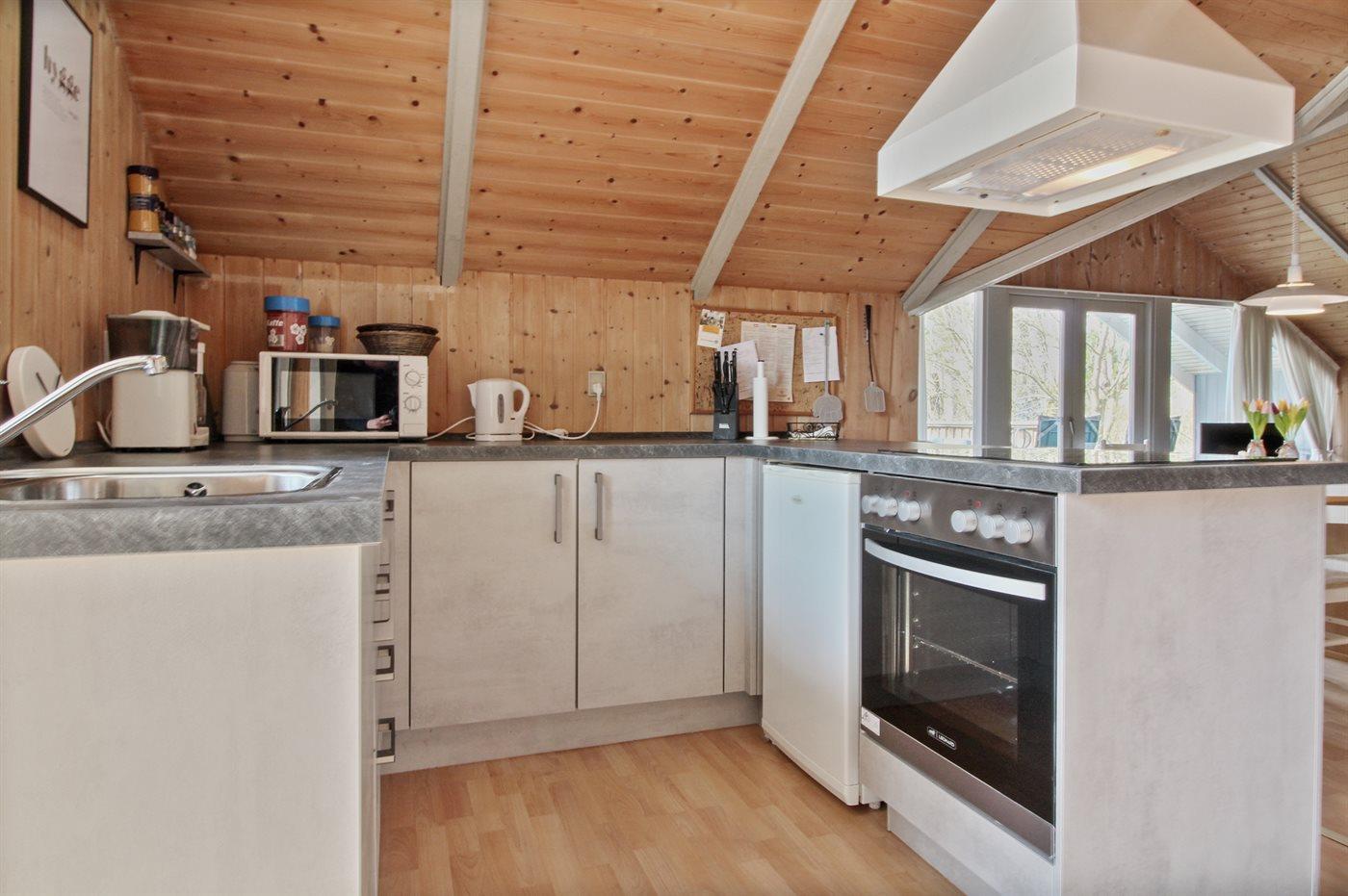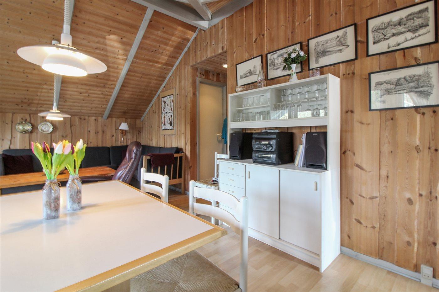 Hyggeligt, mindre sommerhus beliggende på en lukket grund, for enden af blind vej, med tilhørende skønne terrassearealer. Huset er pænt indrettet med sovesofa i opholdsstuen, hvor 1 af sovepladserne befinder sig.