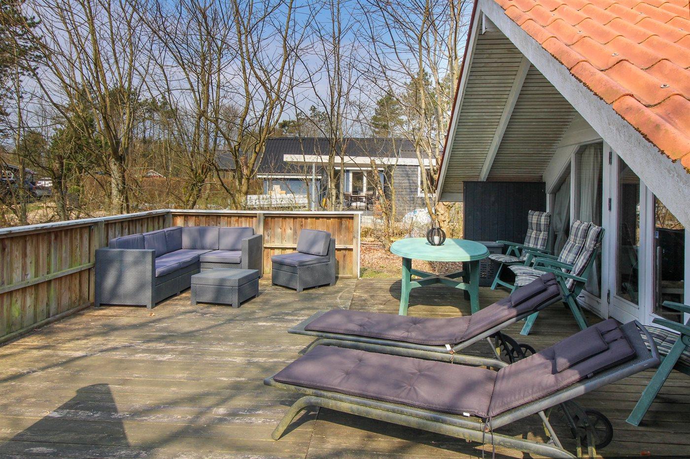 Ferieboligen er beliggende på en 1600 m² stor naturgrund. Der er 12000 m til havet. Nærmeste forretning er beliggende i en afstand af 500 m. Til ferieboligen hører 30 m² terrasseareal. Desuden er der 13 m² overdækket terrasse. Der er redskabsrum. Gynge. Sandkasse. Legehus. Parkering ved ferieboligen.
