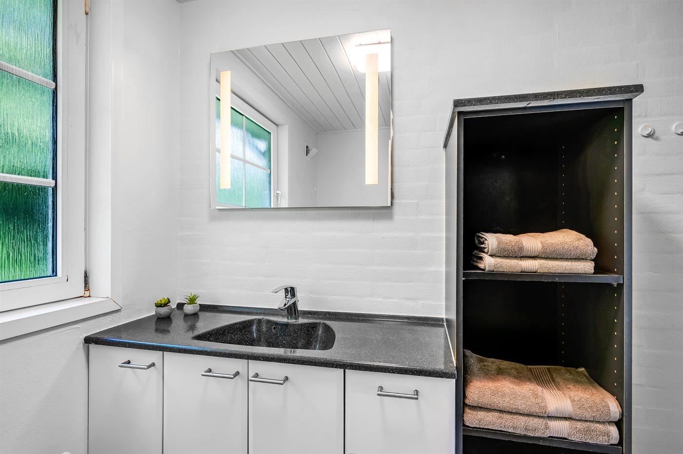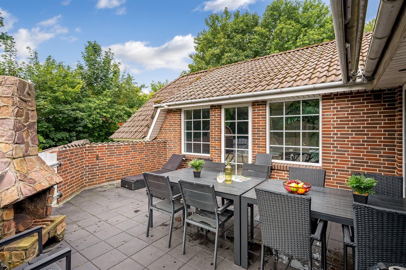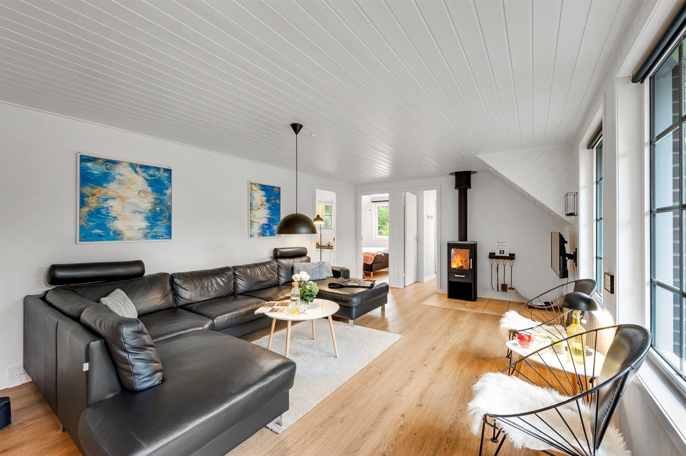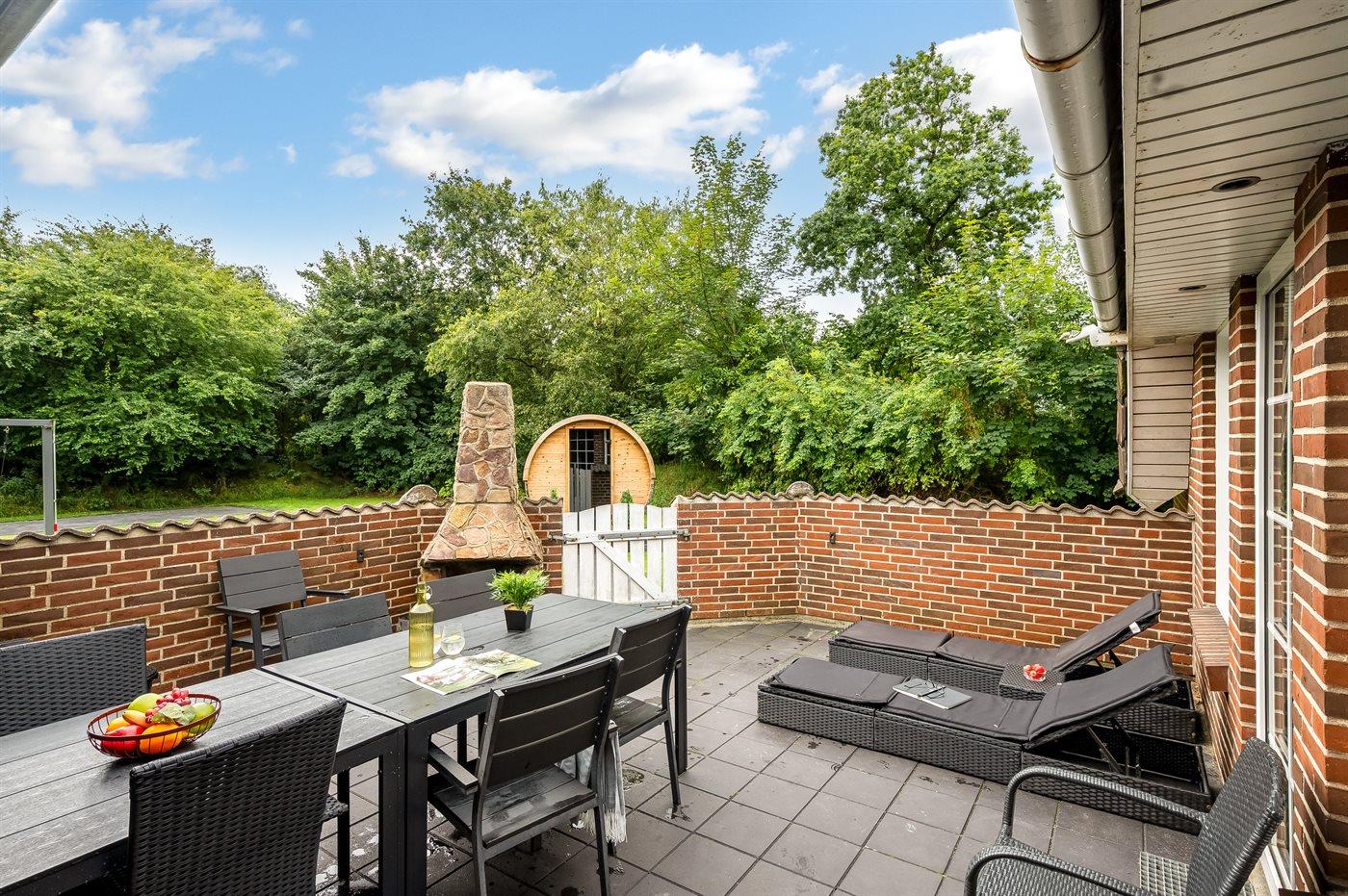 Der findes et stort, lukket og nyt terrasseareal med gode havemøbler, udendørs pejs og udendørs sauna. Veludstyret køkkenafdeling, som er kombineret med opholdsstuen. Der er køleskab, varmluftsovn og opvaskemaskine i rustfrit stål, frithængende emfang i stål/glas, fryser, mikrobølgeovn og induktionskogeplader.