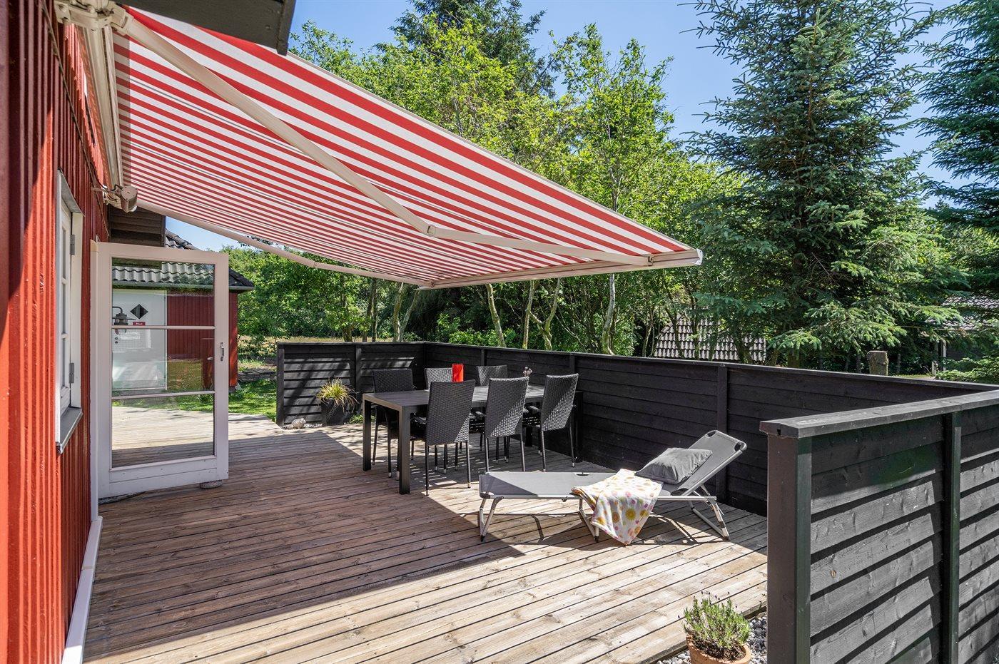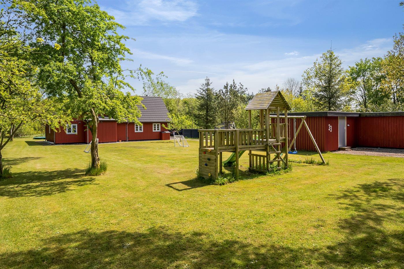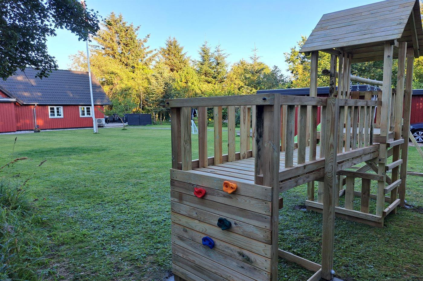 Ferieboligen er beliggende på en 1511 m² stor naturgrund. Der er 12000 m til havet. Nærmeste forretning er beliggende i en afstand af 600 m. Der er en golfbane i en afstand af 9000 m. Til ferieboligen hører åbent terrasseareal. Der er redskabsrum. Gynge. Sandkasse. Trampolin. Der ligger en legeplads i en afstand af 600 m. Grill til rådighed. Der er garage til rådighed. Der er installeret stik til opladning af elbil. Parkering ved ferieboligen.