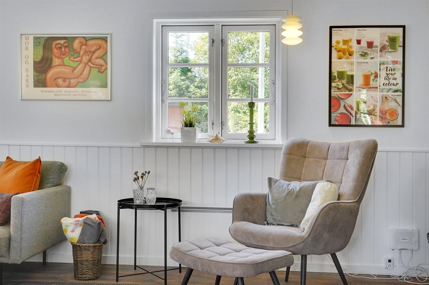 Dette skønne, svensk inspirerede sommerhus giver plads til at komme ned i gear og nyde naturen. Huset ligger på en ugenert grund sidst på vejen med have og udsigt ud til naturområde. Fra huset er der direkte adgang til områdets 11 km stier. Til huset hører også et aktivitetsrum med bl.a. vendbart pool- og air hockey bord samt fitness udstyr. Husets hjerte er den dejlige opholdsstue, der giver plads til ro og fordybelse i den store sofa, hvor hele familien kan nyde flammerne i brændeovnen eller se en god film i fjernsynet. Der er også bøger og spil som kan benyttes under opholdet.
