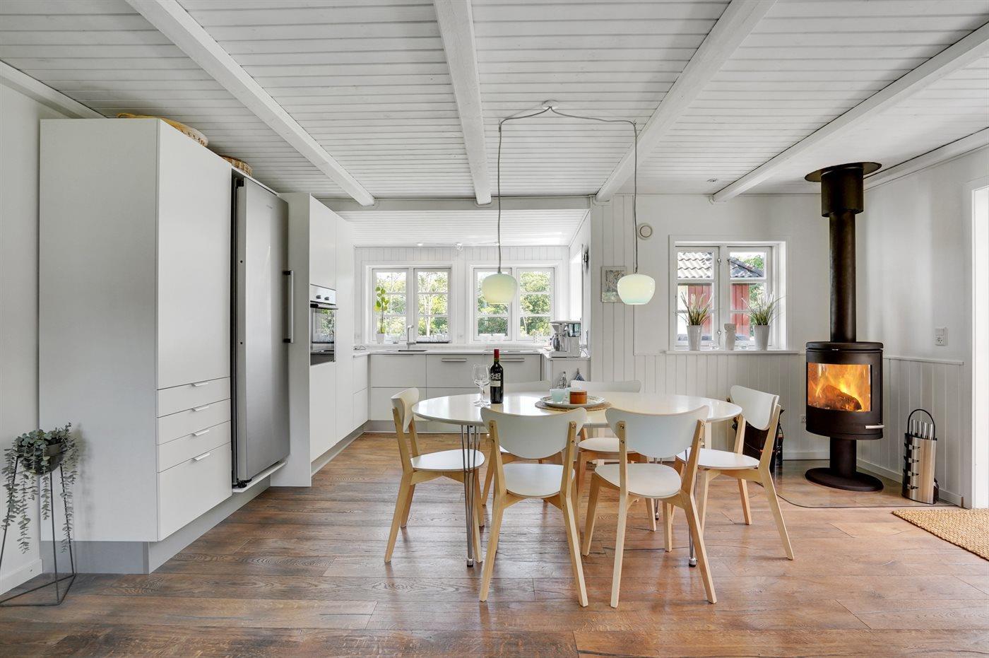 Køkkenet er udstyret med 1 køleskab. Der er 4 induktionskogeplader, varmluftovn, mikrobølgeovn samt opvaskemaskine.