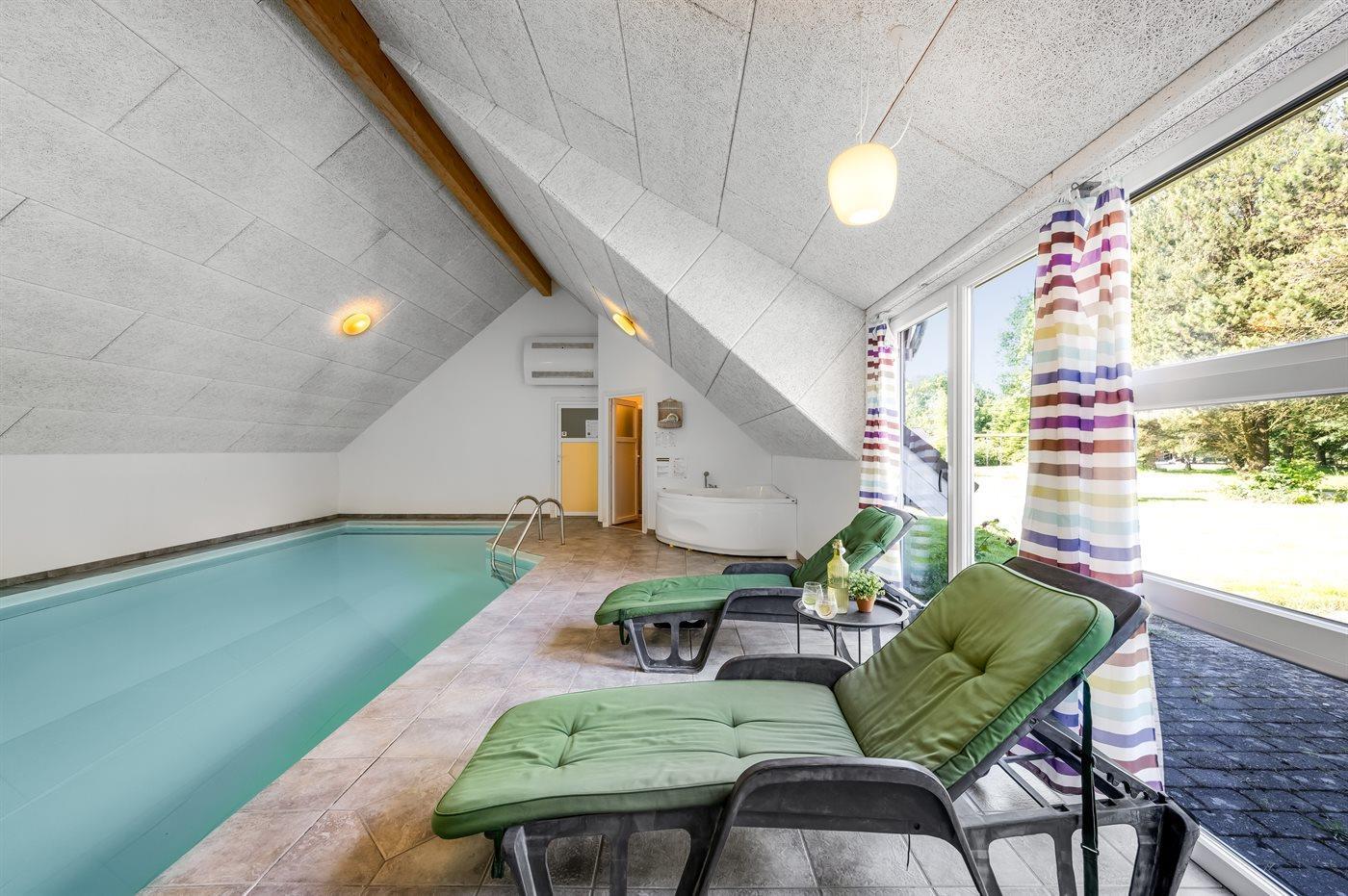 Dejligt stort poolområde med spa og adgang til sauna og 1 af husets badeværelser. Huset er beliggende på en naturgrund med legeborg, gynger og sandkasse. Huset har en god fliseterrasse, hvor man kan nyde solen og freden i området.