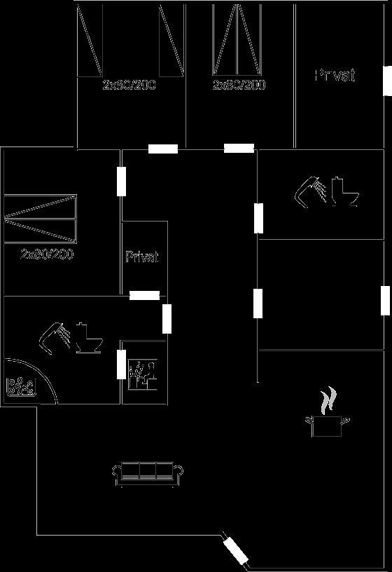 Der er 2 badeværelser med bruseniche og 2 toiletter. Der er gulvvarme på 2 badeværelser. I saunaen er der mulighed for afslapning.