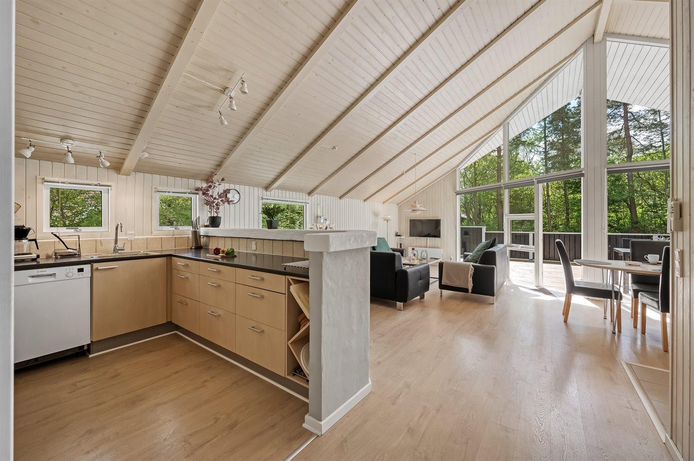 Køkkenet er udstyret med 1 køleskab. Der er 4 keramiske kogeplader, varmluftovn, mikrobølgeovn samt opvaskemaskine.