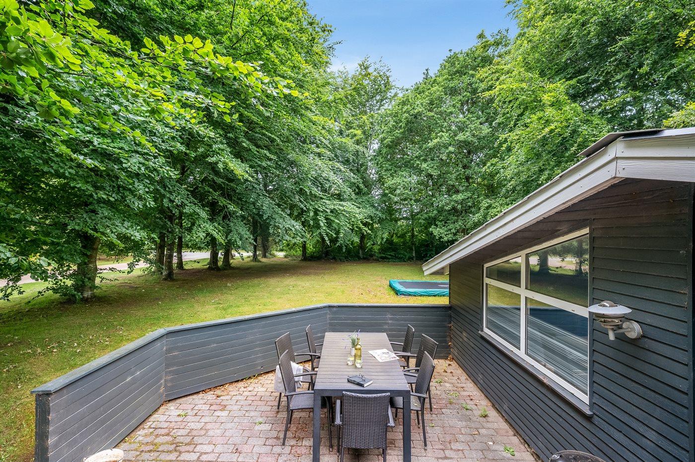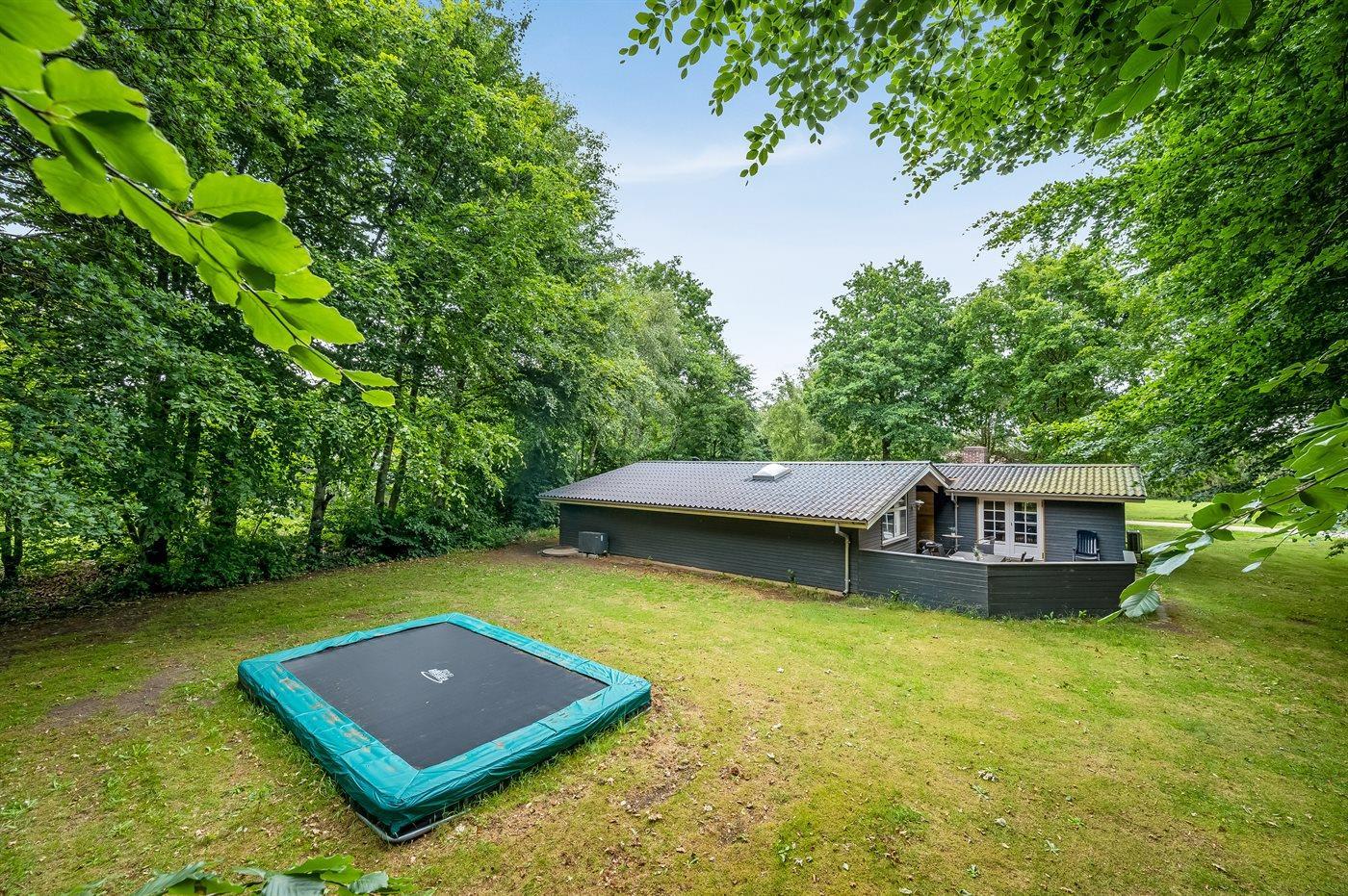 De omkringliggende terrasser giver rig mulighed for at nyde solen, og i haven står en trampolin klar til familiens yngste.