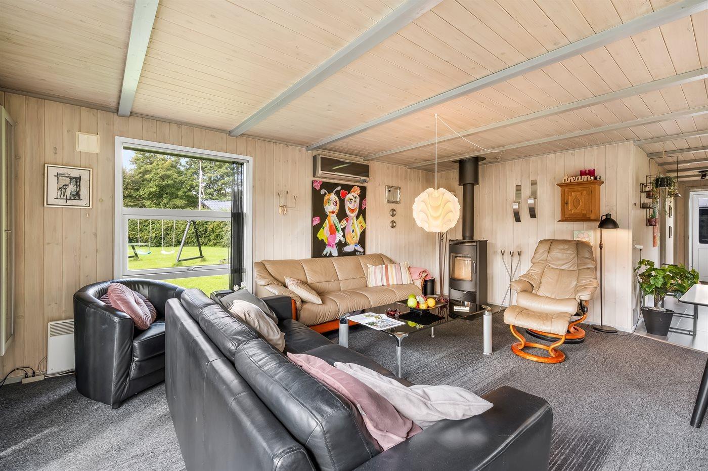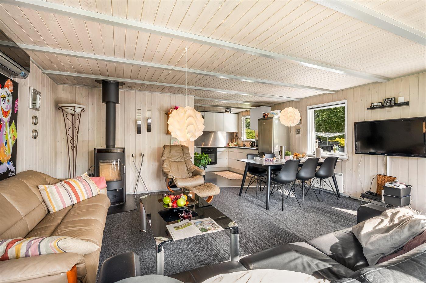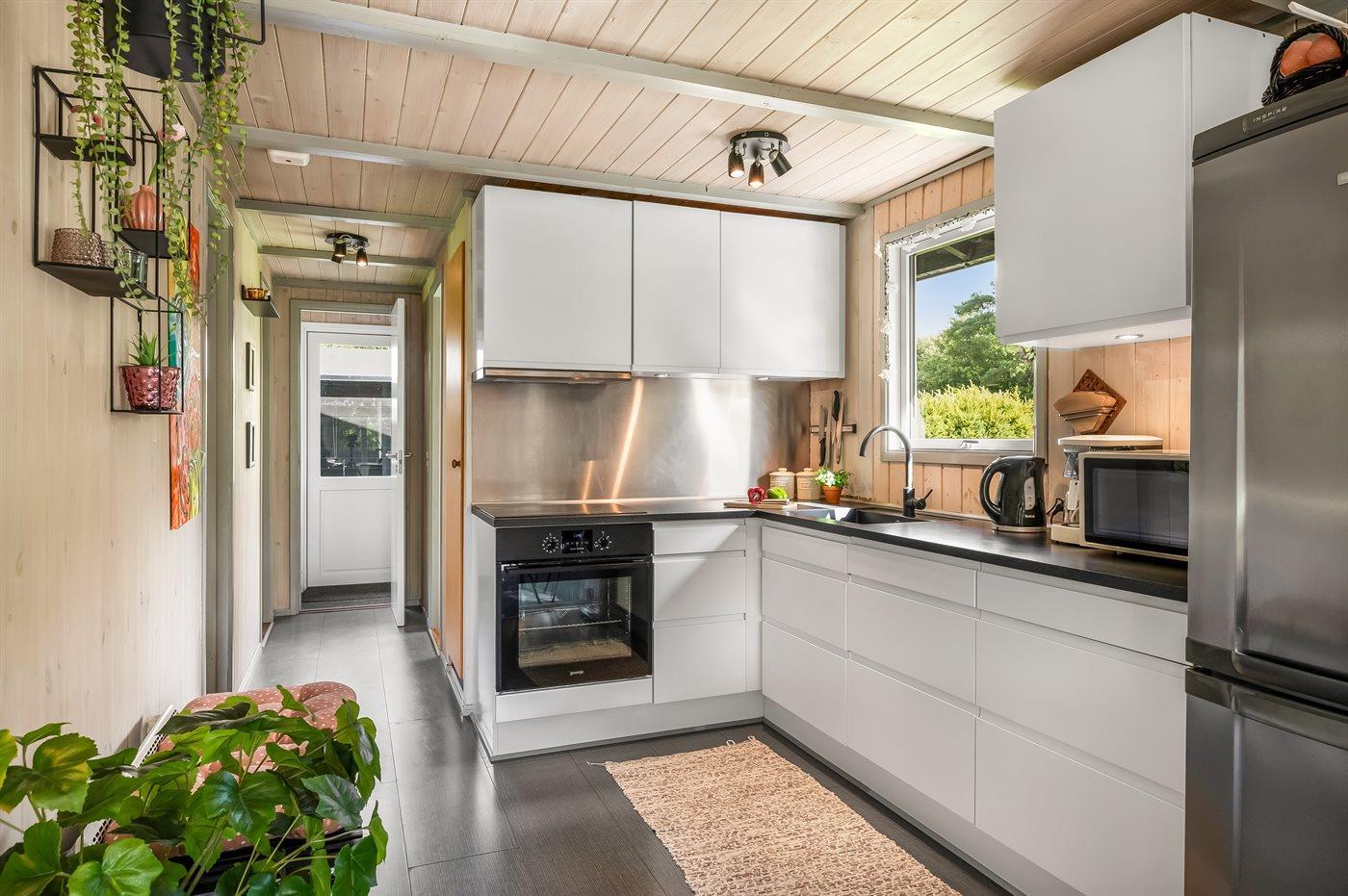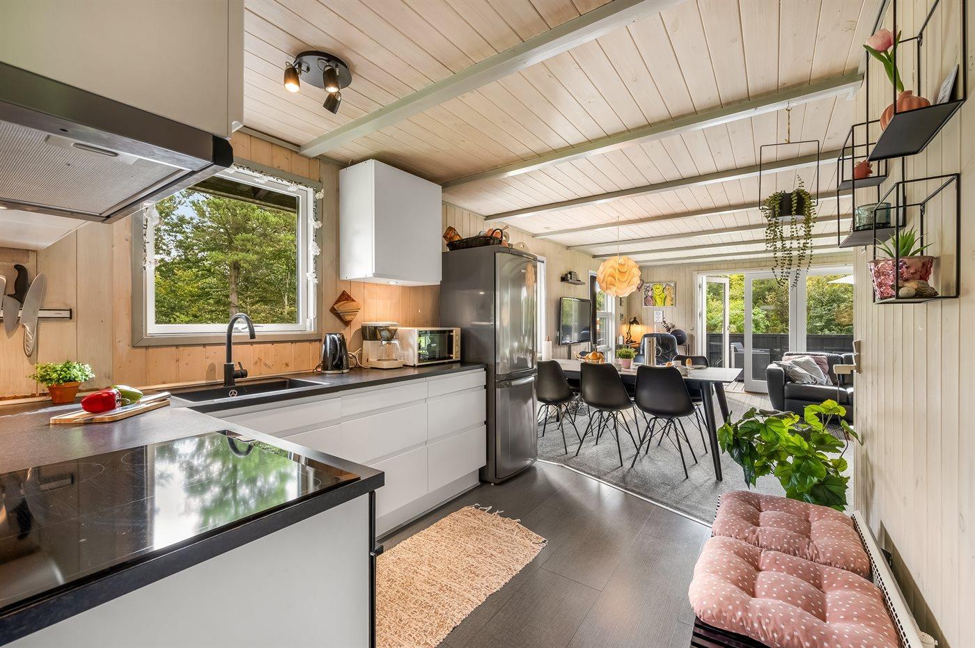 Sommerhus beliggende i rolige omgivelser på en lukket grund, hvor hygge og samvær er i fokus.