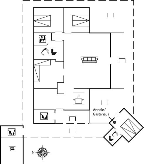 Der er i alt 4 soveværelser. Sovepladserne fordeler sig på: 6 sovepladser i dobbeltsenge. 2 sovepladser i enkeltsenge. 2 af disse sovepladser befinder sig i et anneks. Derudover er der 1 stk. barneseng.