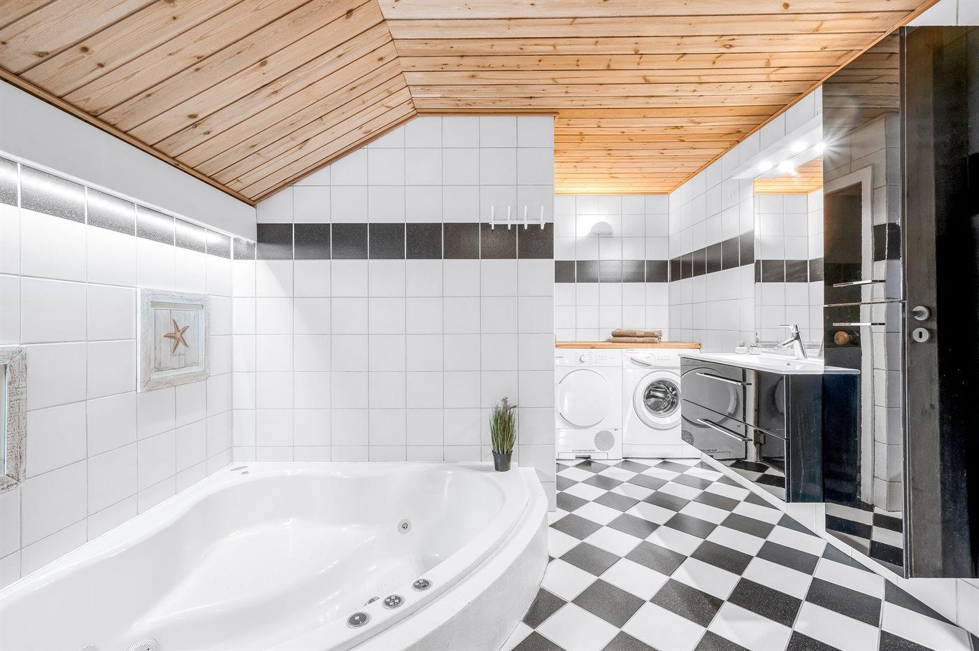 Der er 1 badeværelse med bruseniche og 2 toiletter, heraf 1 gæstetoilet. Der er gulvvarme på 1 badeværelse. I saunaen er der mulighed for afslapning.