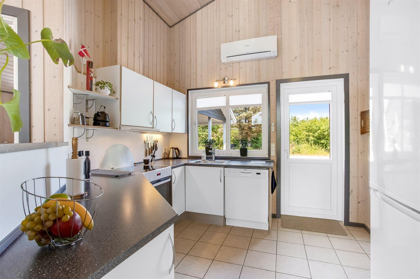 Køkkenet er udstyret med 1 køleskab. Der er 4 keramiske kogeplader, varmluftovn, mikrobølgeovn samt opvaskemaskine.