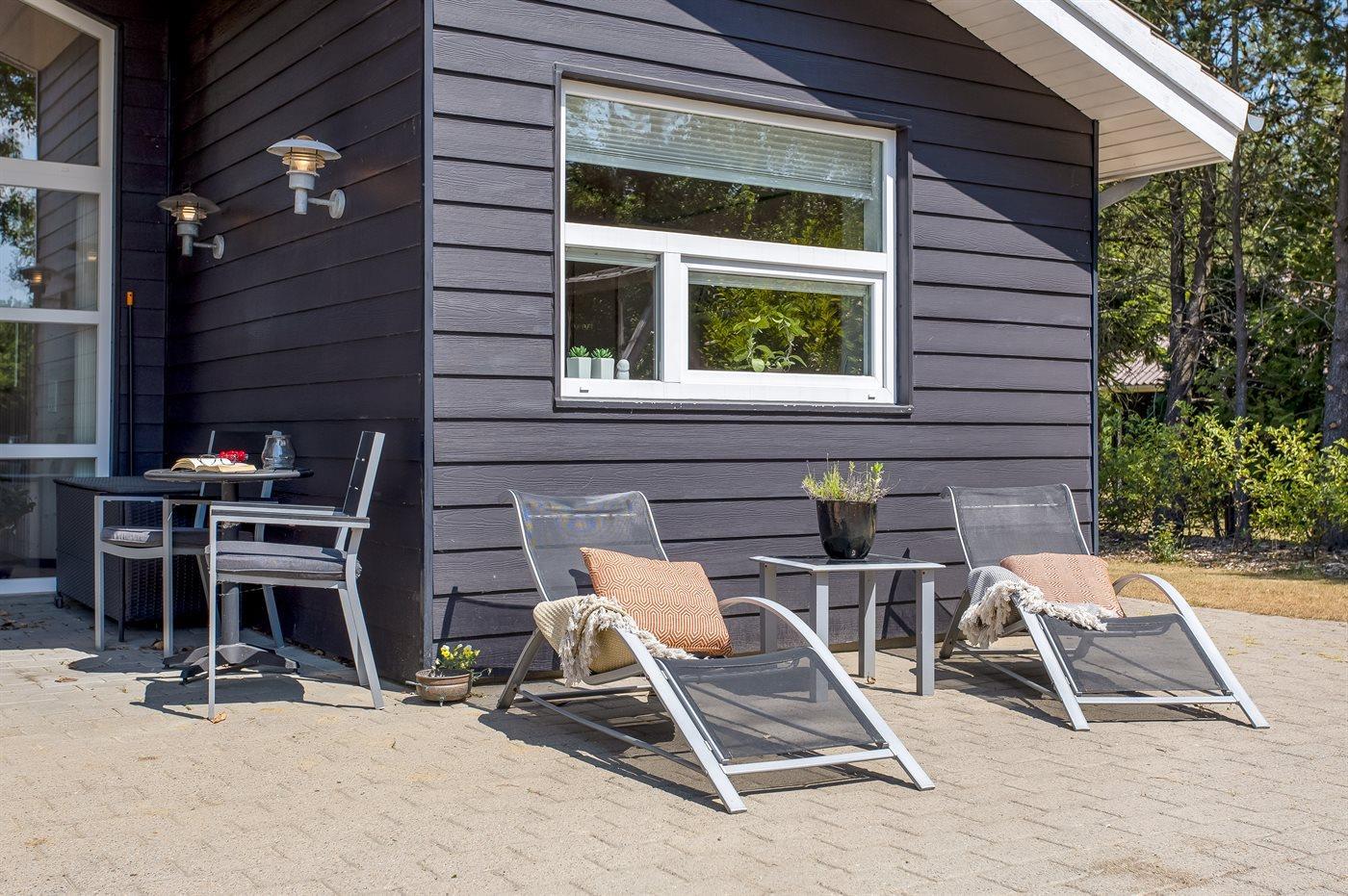 Ferieboligen er beliggende på en 1550 m² stor havegrund. Der er 12000 m til havet. Nærmeste forretning er beliggende i en afstand af 500 m. Til ferieboligen hører 50 m² terrasseareal. Desuden er der 10 m² overdækket terrasse. Der er redskabsrum. Gynge. Der er carport til rådighed. Parkering ved ferieboligen.