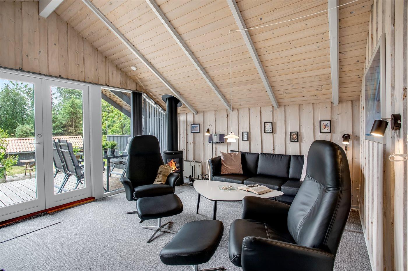 Et flot og virkelig velholdt sommerhus med skøn træterrasse. Huset, som er løbende renoveret, ligger på en grund, som grænser op mod et flot naturområde.