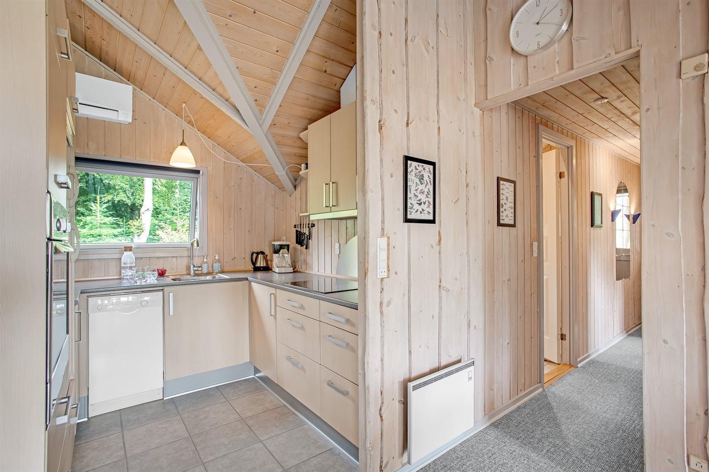 Køkkenet er udstyret med 1 køleskab. Der er 4 keramiske kogeplader, miniovn, varmluftovn, mikrobølgeovn samt opvaskemaskine.