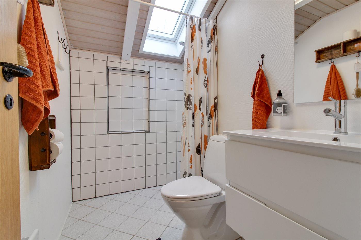 Der er 1 badeværelse med bruseniche og 1 toilet.. Der er gulvvarme på 1 badeværelse.