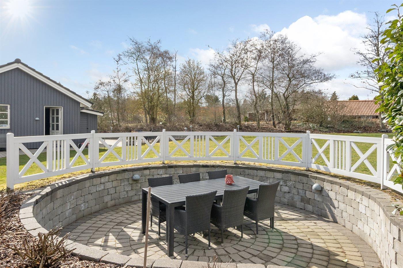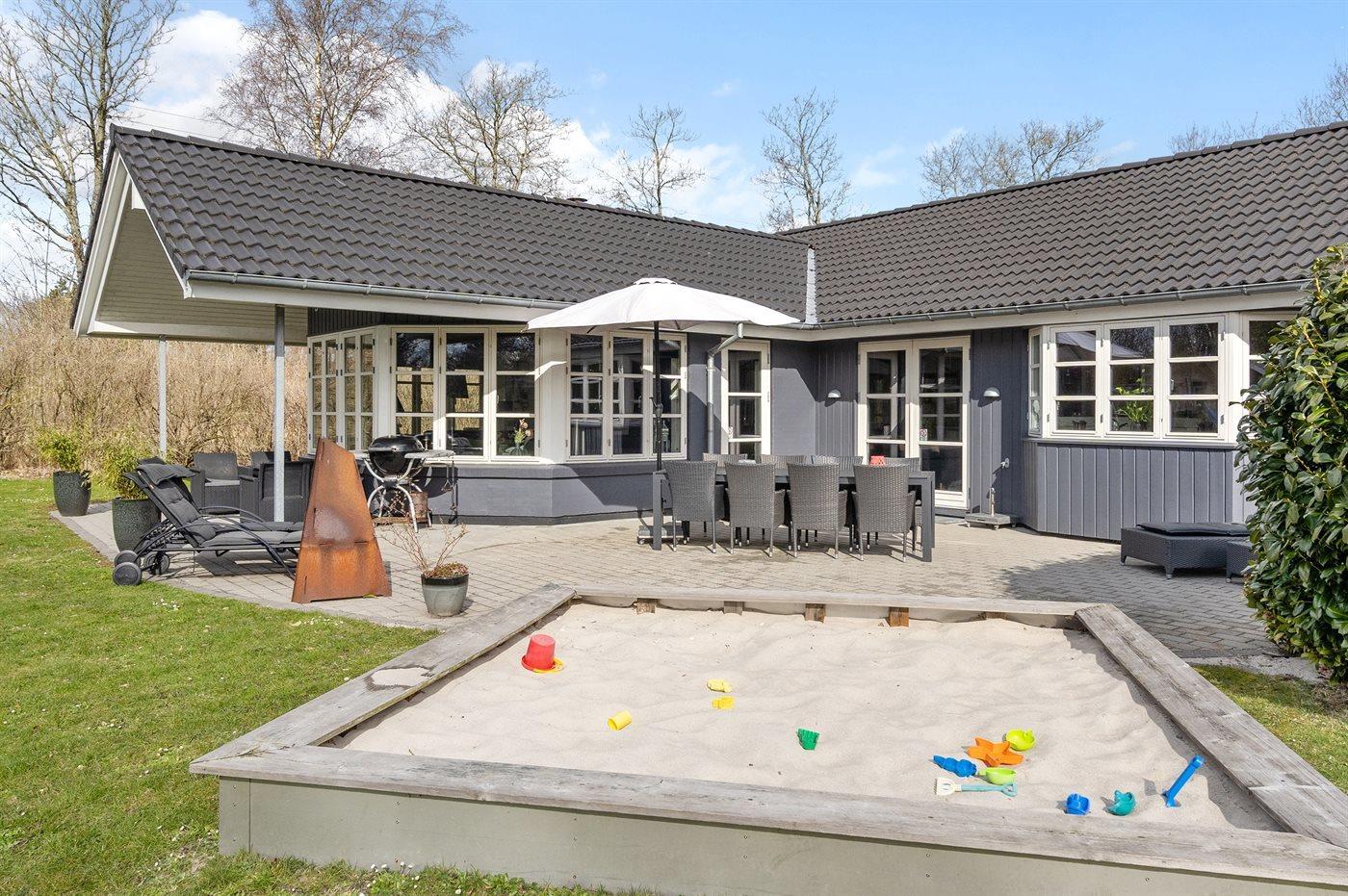 Ferieboligen er beliggende på en 1986 m² stor havegrund. Der er 11000 m til havet. Nærmeste forretning er beliggende i en afstand af 500 m. Til ferieboligen hører åbent terrasseareal. Desuden er der overdækket terrasse. Gynge. Sandkasse. Legehus. Legetårn. Rutchebane. Fodboldmål. Der ligger en legeplads i en afstand af 500 m. Grill til rådighed. Der er garage til rådighed. Parkering ved ferieboligen.