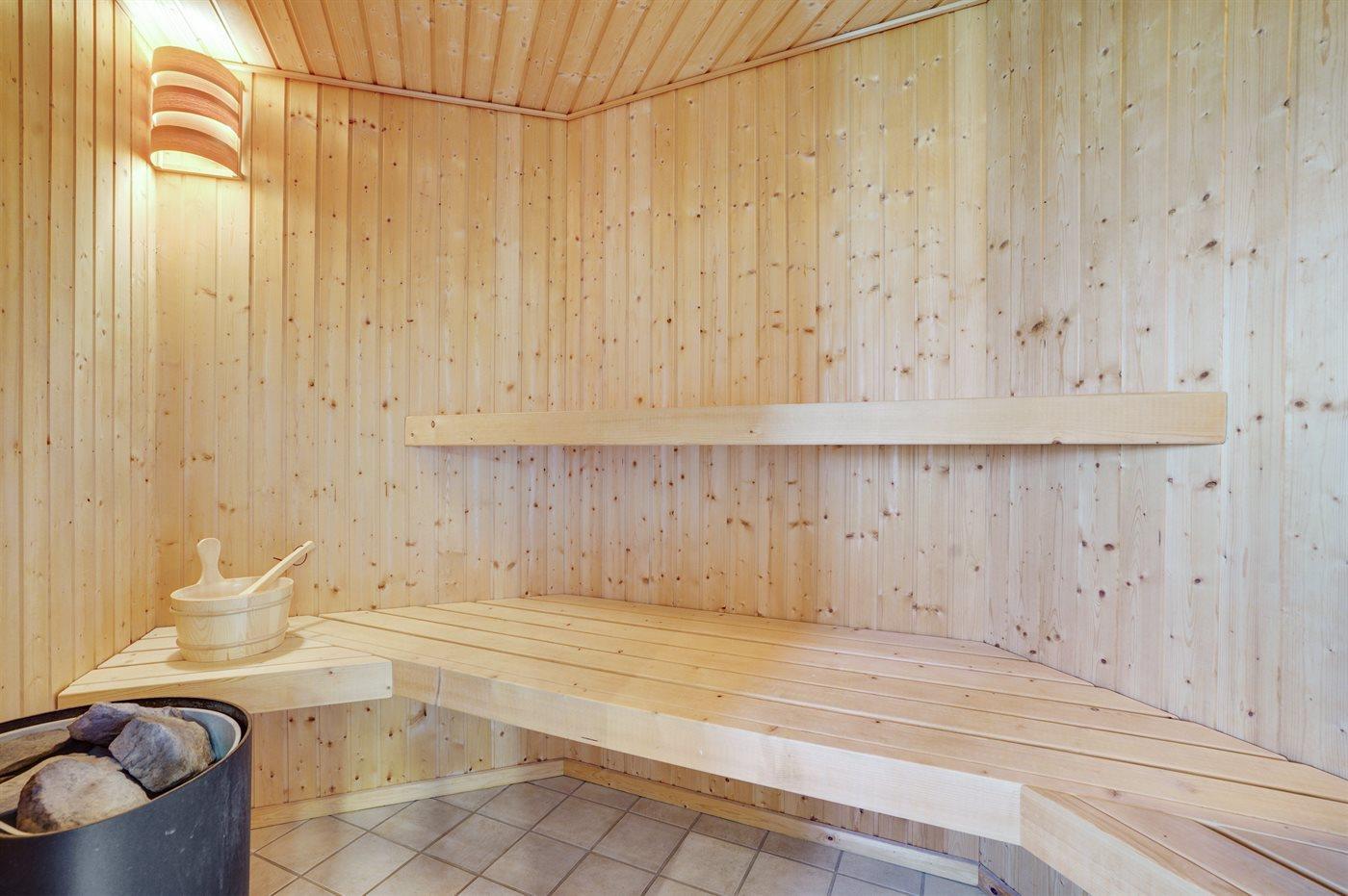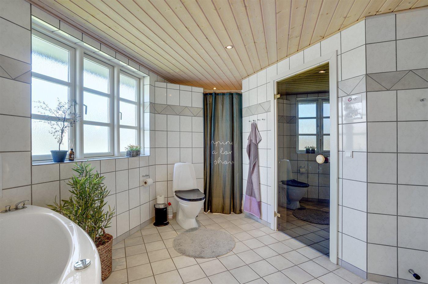 Der er 2 badeværelser med bruseniche og 2 toiletter. Der er gulvvarme på 2 badeværelser. I saunaen er der mulighed for afslapning.