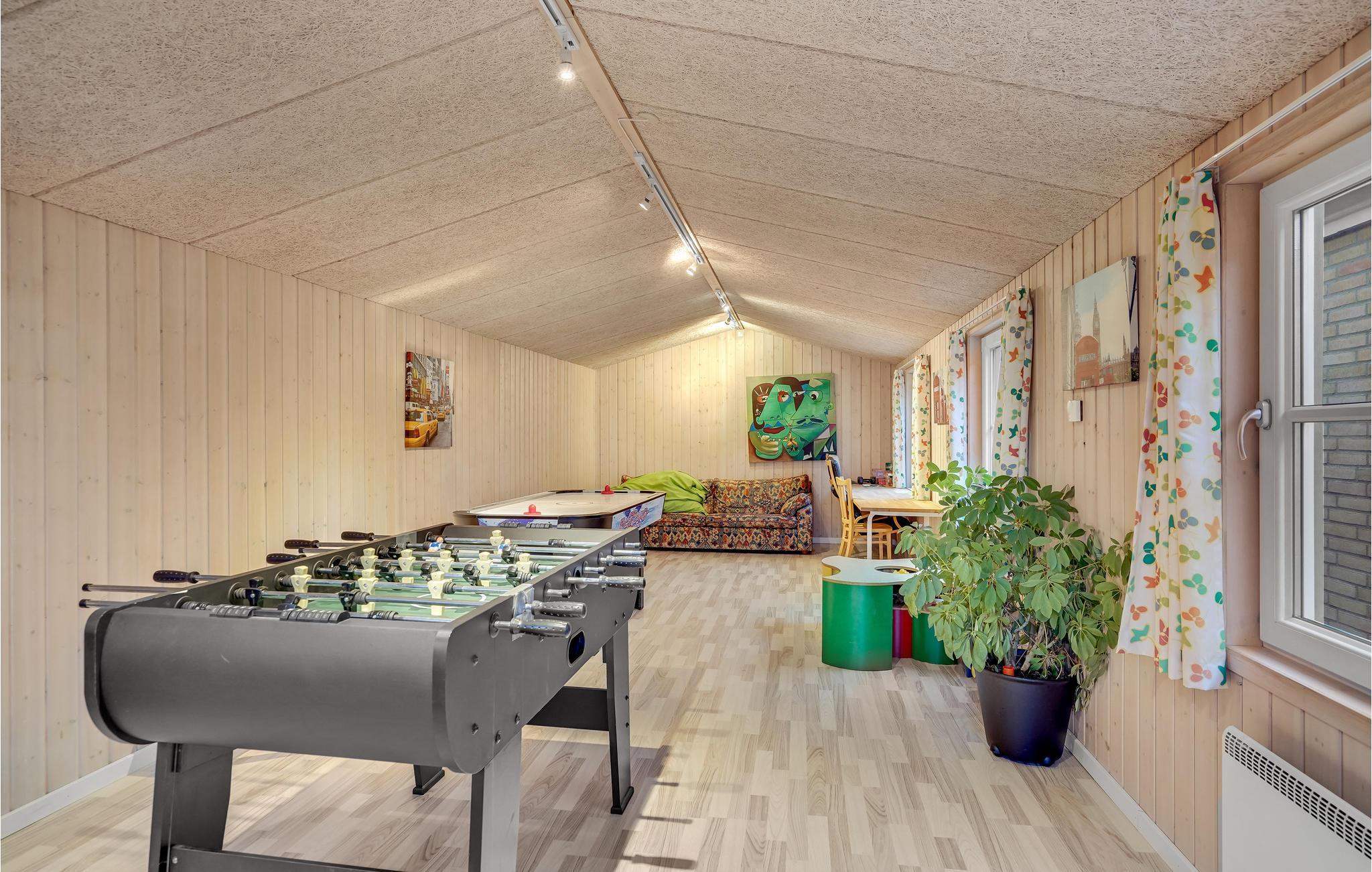 Dejligt feriehus med swimmingpool, sauna, standvandsspa samt et separat aktivitetshus med airhockey, bordfodbold m.m. Det har en fantastisk beliggenhed på en stor ugenert, delvist lukket naturgrund med et shelter, og kun få minutters kørsel fra flere golfbaner og den jyske vestkyst med Danmarks bedste og hvideste badestrande. Der er heller ikke langt til en større put and take-sø. Rummeligt køkken/alrum med klinkegulv og gulvvarme, en hyggelig stueafdeling med sofagruppe samt brændeovn. Affugteren i poolrummet kører på aktivitetssensor, hvilket er med til at reducere el-udgifterne. Huset indeholder desuden også flere varmepumper med klimaanlæg. Endvidere findes der udendørs en basketballbane samt en stor lege-/aktivitetsborg.