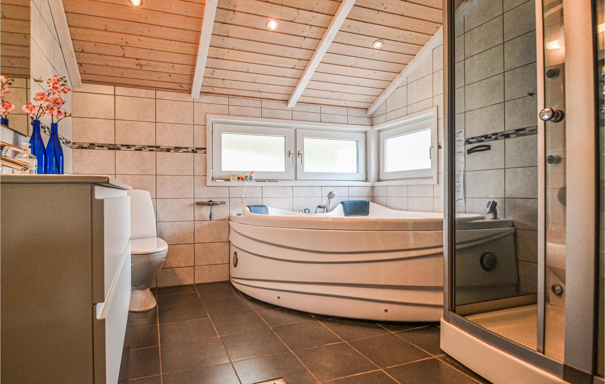 Dette velholdte og rummelige feriehus ligger på en stor, lukket naturgrund i Jegum Ferieland. Stedet er ideelt til børnefamilier, da der f.eks. er en stor legeplads, minigolfbane, hoppeborg, tennisbaner og gode indkøbsmuligheder. Huset er meget smagfuldt indrettet og indeholder bl.a. wellnessfaciliteter som spabad og sauna i det ene badeværelse. I køkken/alrummet med brændeovn og klimaanlæg er der store panoramavinduer med god udsigt over grunden. På grunden, som er dejlig stor, er der plads til mange udendørs aktiviteter, her findes bl.a. en beachvolleybane. Ved huset findes en carport til jeres bil, så den står i skygge og tørvejr på henholdsvis sommerdage/regnvejrsdage.