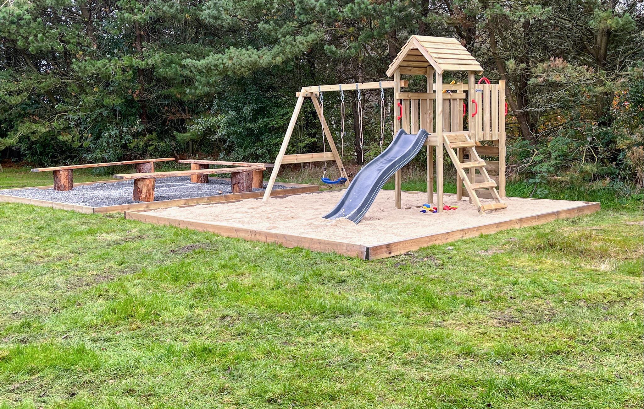 Flot feriehus i Oksbøl med stor naturgrund, spa, sauna og legeområde for hele familien.