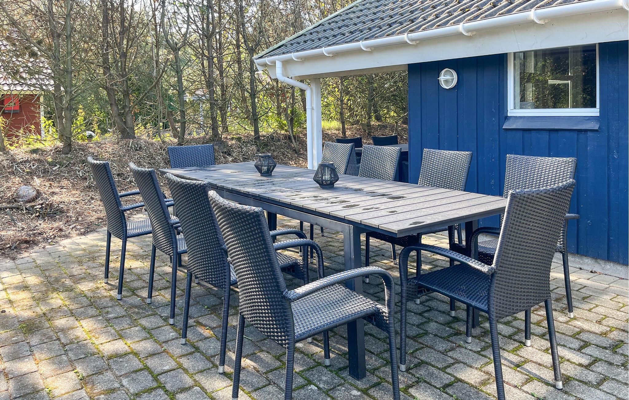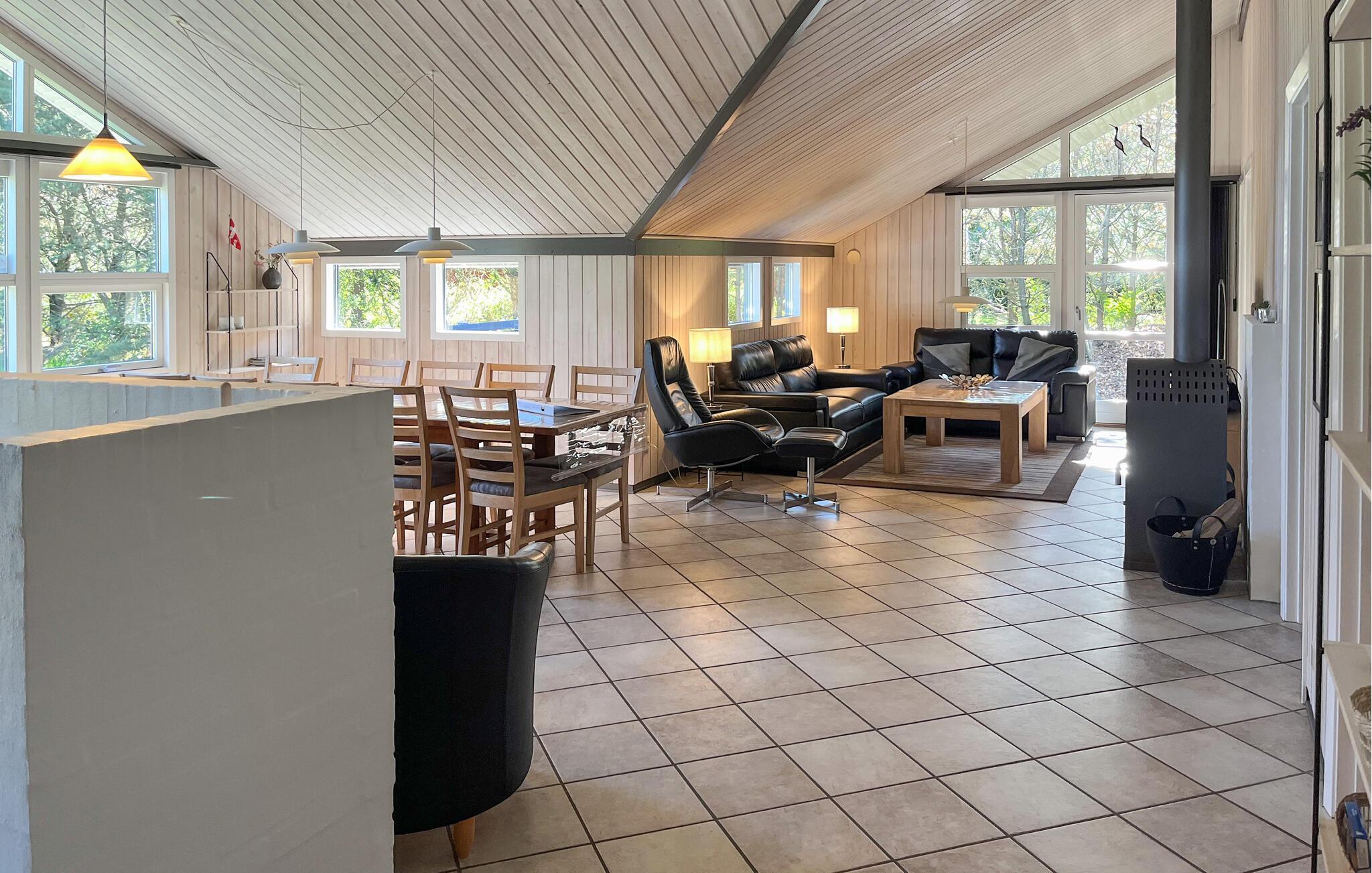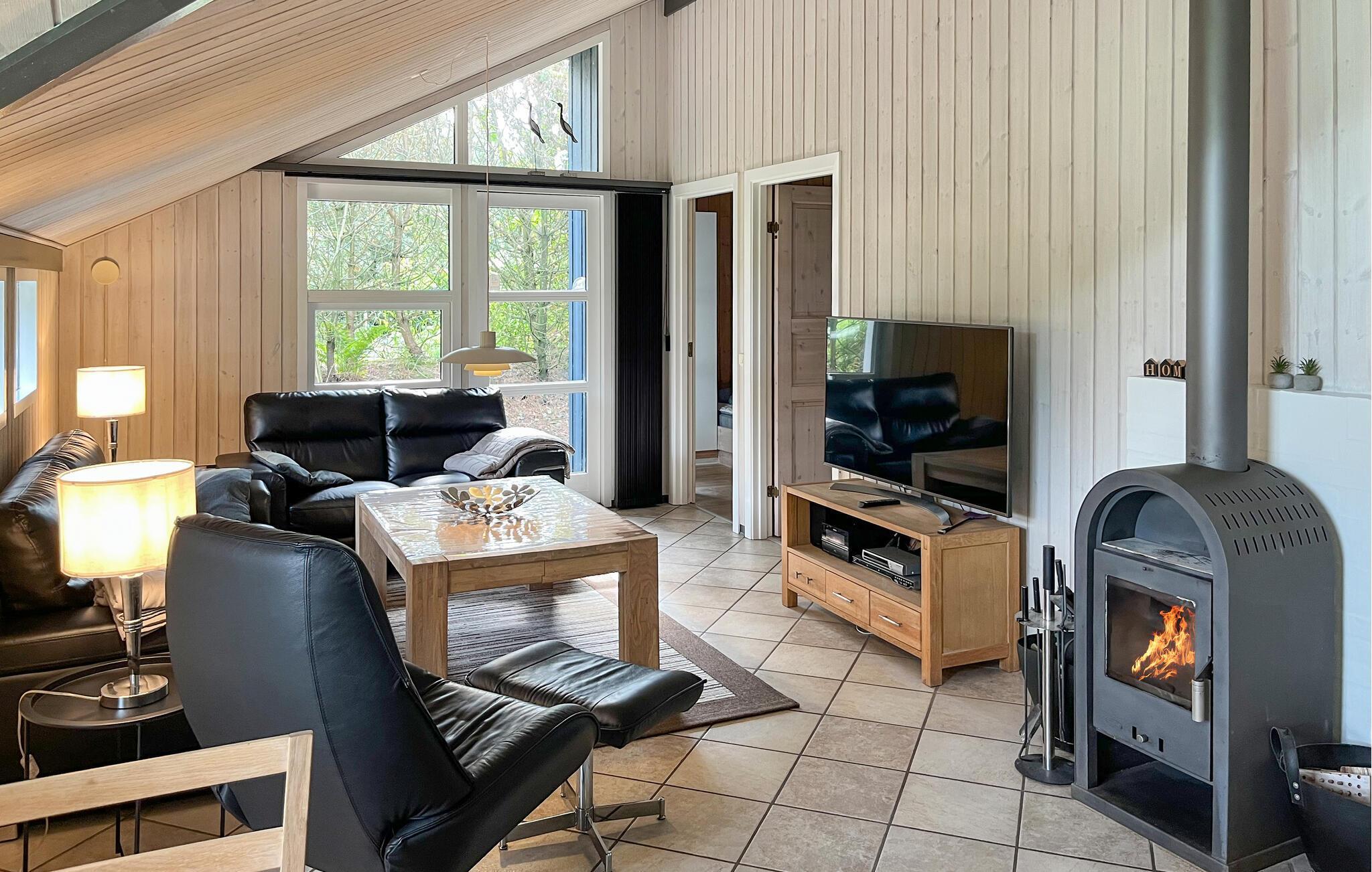 Et rigtig flot feriehus beliggende på en stor, ugenert naturgrund med legeborg, gynger, sandkasse samt flere legeredskaber. Feriehuset byder bl.a. på et dejligt badeværelse med stort spabad samt adgang til sauna. Alle soveværelser er udstyret med tv med mulighed for tilkobling af diverse spillekonsoller. Fra det rummelige køkken/alrum med klinker, gulvvarme og brændeovn, er der direkte udgang til flere flisebelagte, læfyldte terrasser. Huset har en unik beliggenhed med gåafstand til aktivitetscenter, hoppeborge, indkøbsmuligheder samt restaurant.