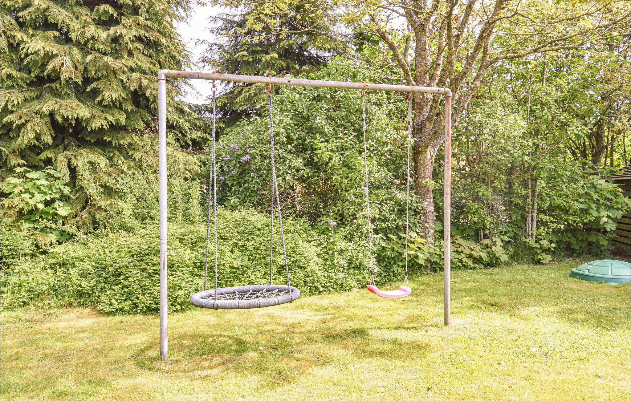Aktivitetsferiehus i Jegum Ferieland med terrasse, brændeovn, klimaanlæg og legeplads i naturskønne omgivelser.