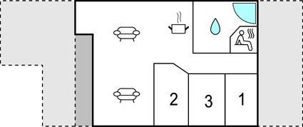 Badeværelse (nr. 1) - WC. Varmt og koldt vand. Bruser