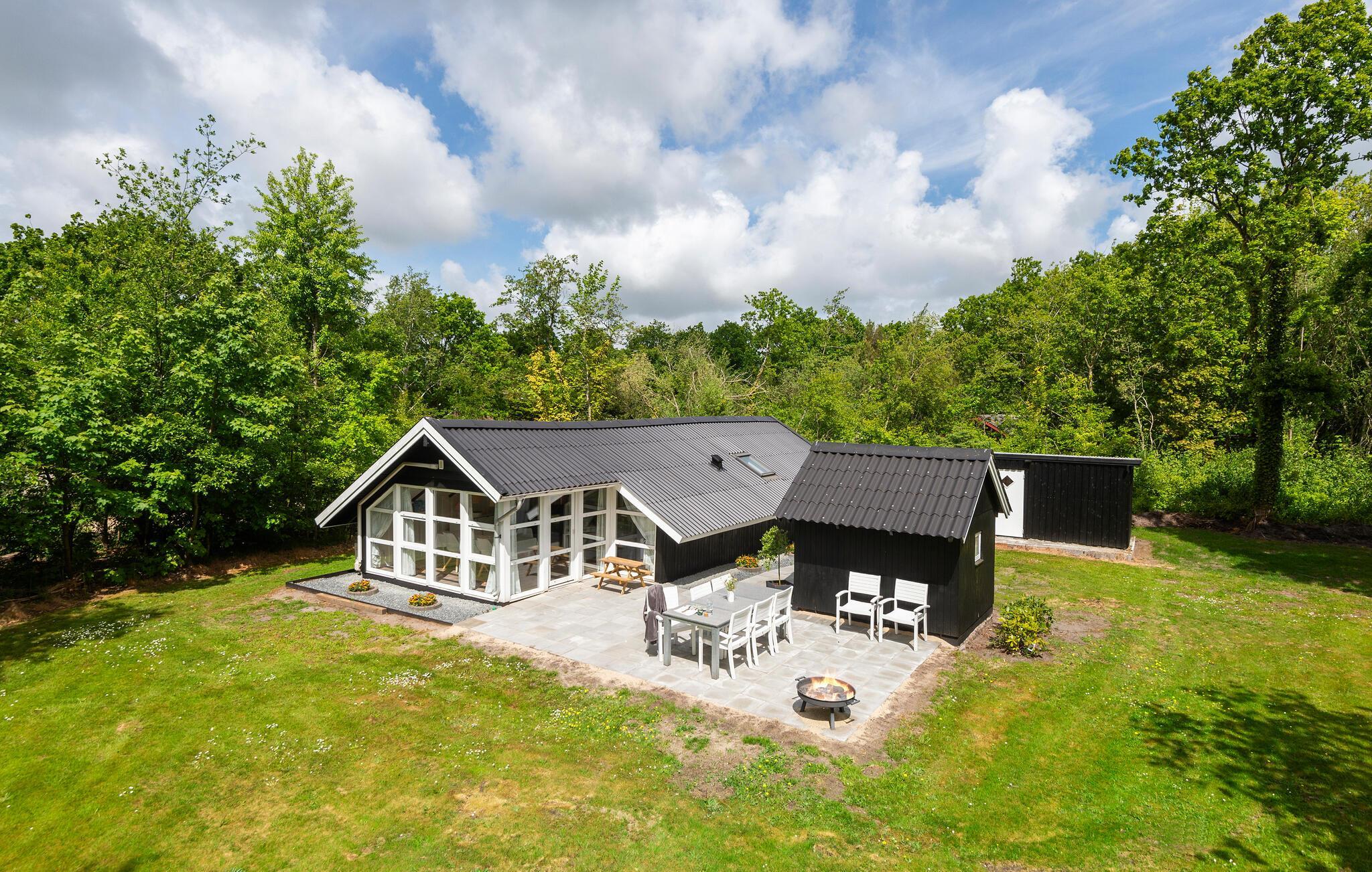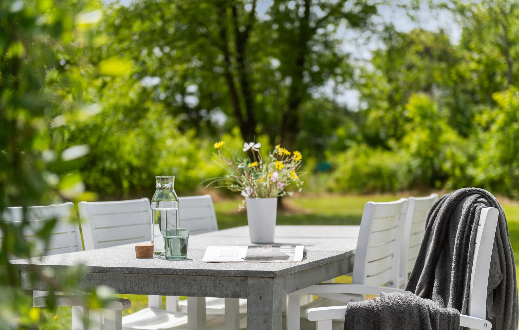 Den delvist indhegnede naturgrund tilbyder privatliv til stemningsfulde måltider og masser af plads til, at børnene kan lege og boltre sig.