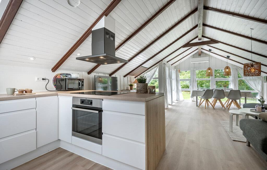 En vidunderlig ferie venter jer i dette smukt renoverede, charmerende feriehus. Glæd jer til et behageligt opholdsmiljø i de lyse, smagfulde værelser. Nyd hyggelige måltider med udsigt over det grønne og hyggelige filmaftener på den rummelige sofa.