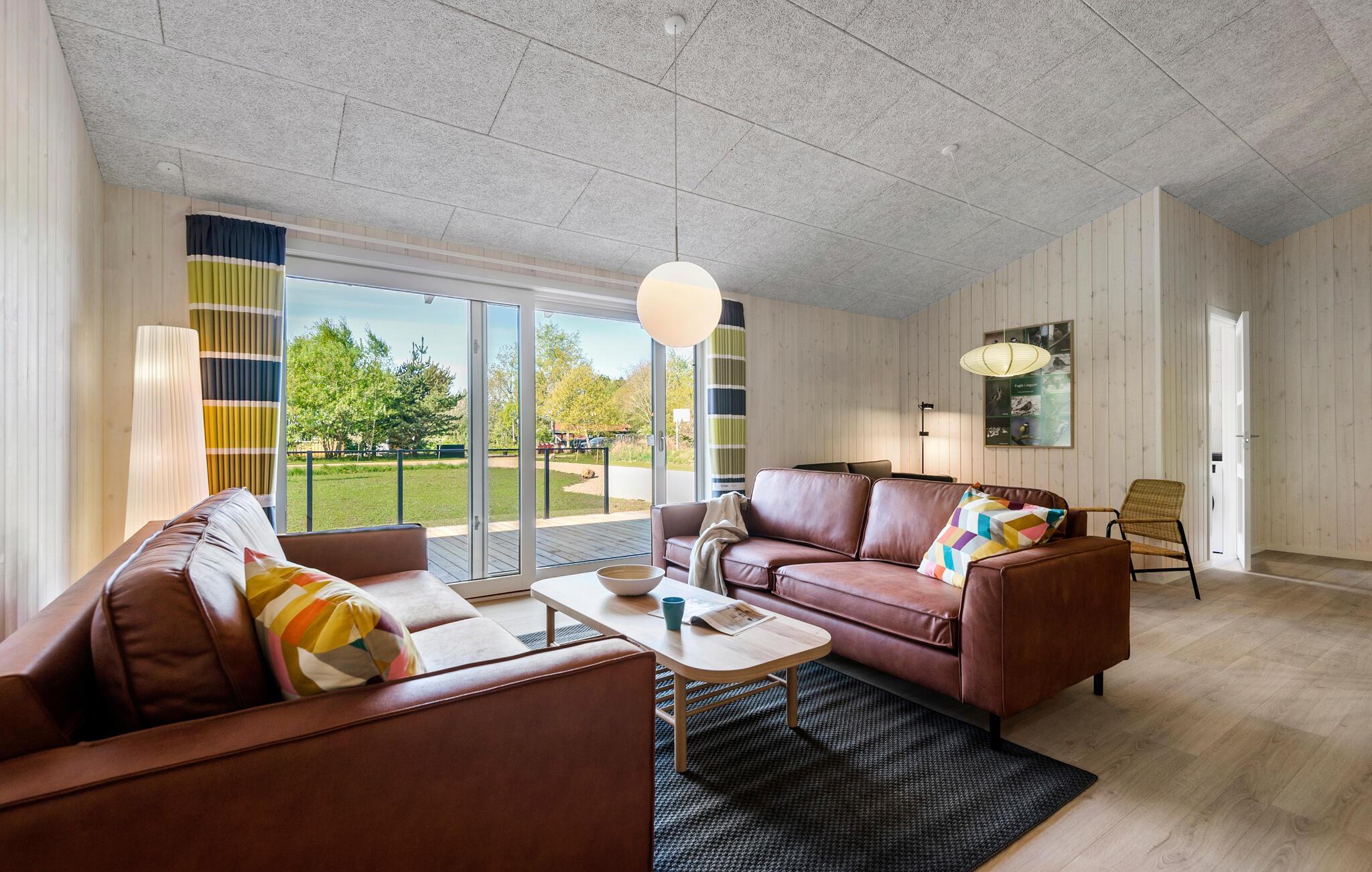 Oplev fred og komfort i dette moderne feriehus med stor terrasse og aktivitetsrum i naturskønne omgivelser.