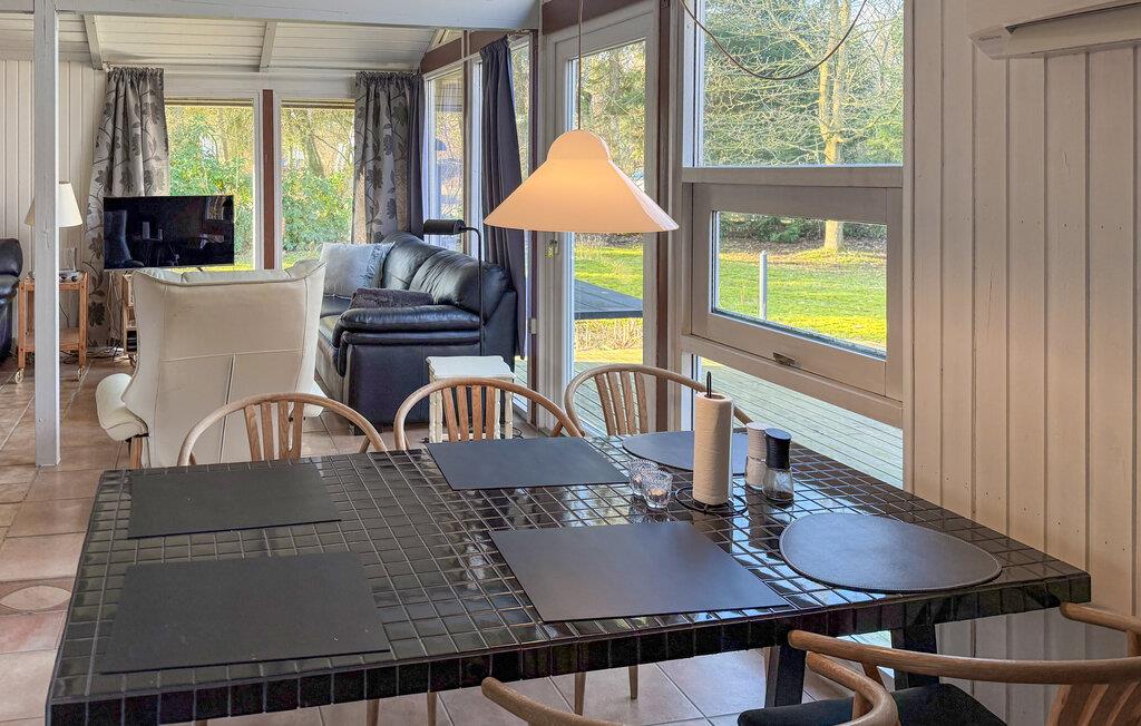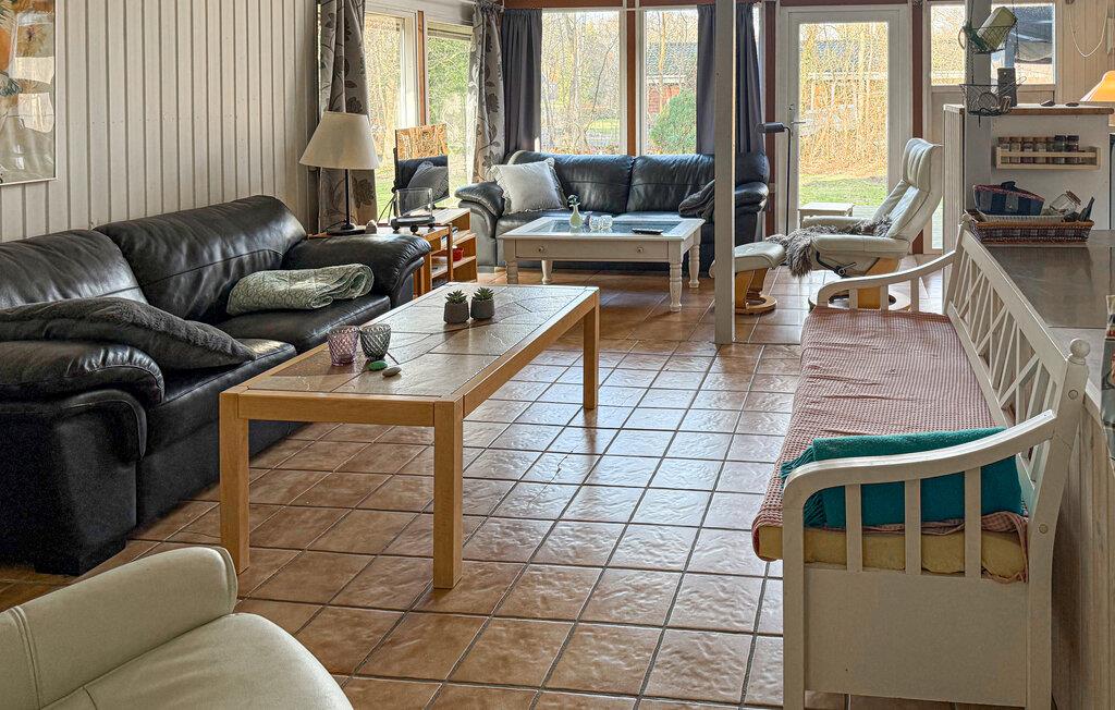 I kan se frem til en masse gode feriestunder i dette hus, som er varmt og hjemligt indrettet. Sæt jer til rette i stuen, der får lyset ind gennem de store vinduer og nyd udsigten til haven. Find jer til rette i de hyggelige sofaer og mærk den behagelige varme fra brændeovnen om aftenen. Tilbered lækre retter i det veludstyrede køkken og server dem derefter i den åbne spisestue. Tilbring hyggelige timer her med familien og planlæg jeres næste udflugter sammen.