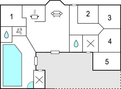 Soveværelse 10m2 (nr. 5) - 2 Sovepladser. (Enkeltseng(e)). 2 Sovepladser. (Etageseng(e)).