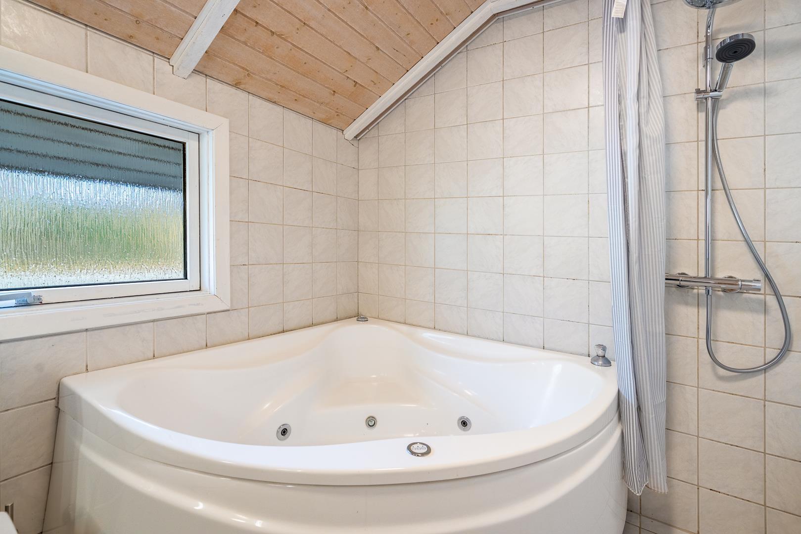 Et særligt højdepunkt er wellnessafdelingen med sauna og spa – det perfekte sted at koble af efter en frisk gåtur ved havet. Badeværelset har desuden gulvvarme for ekstra komfort.