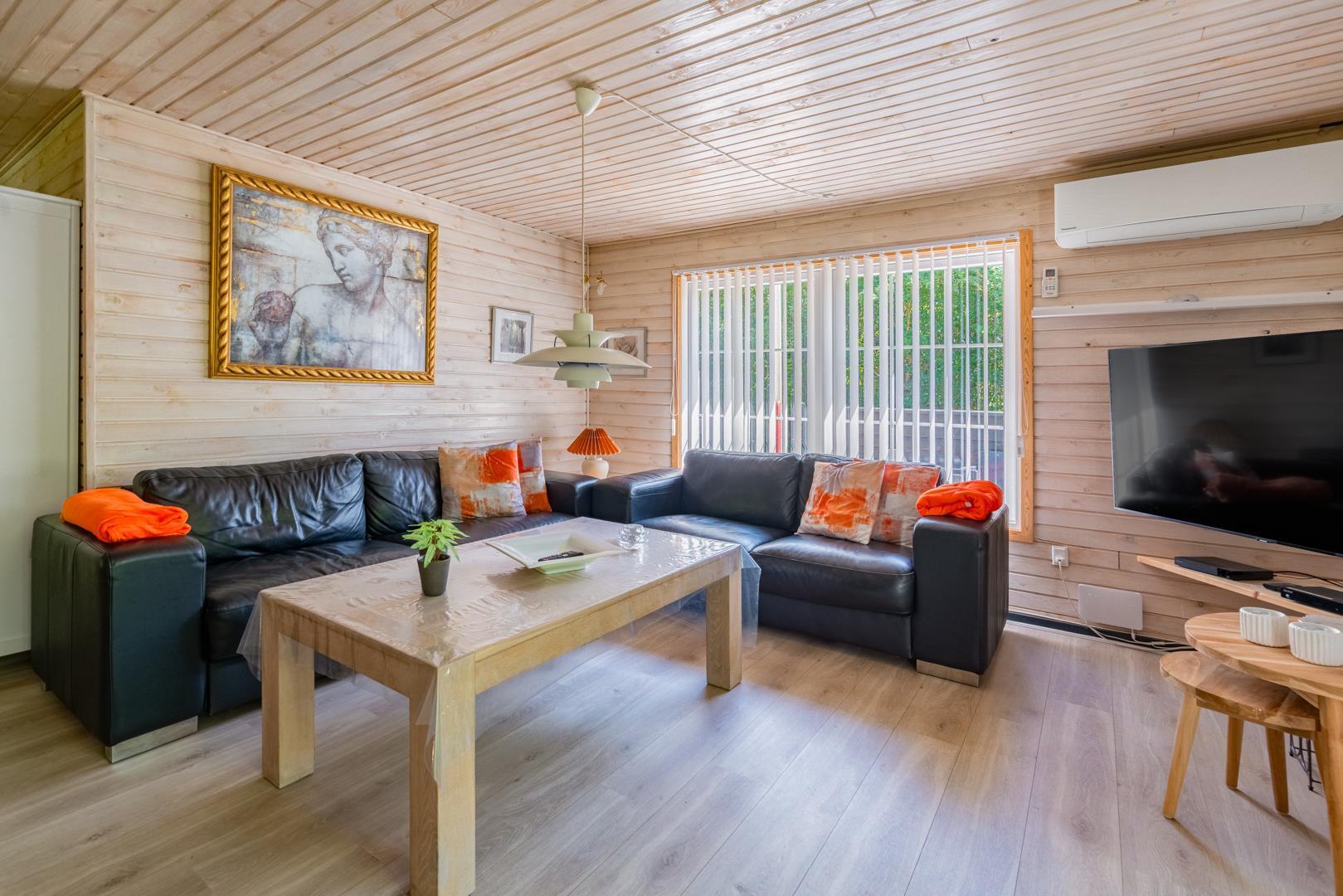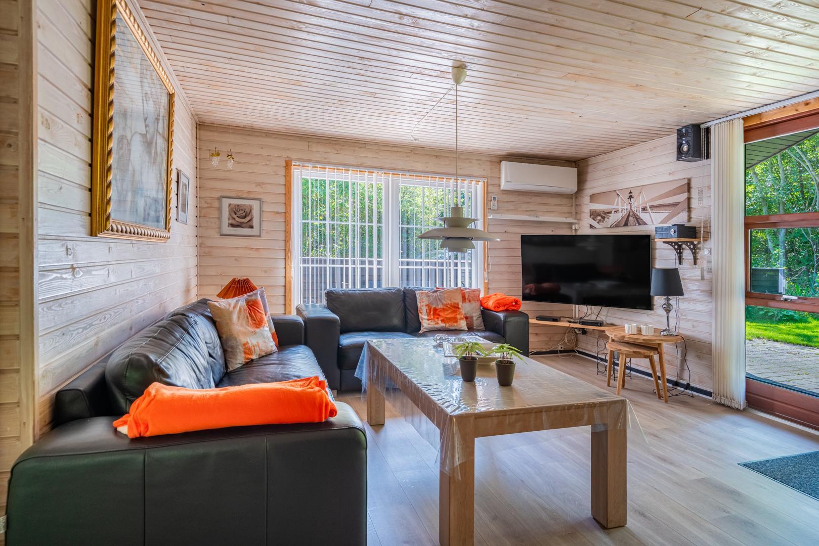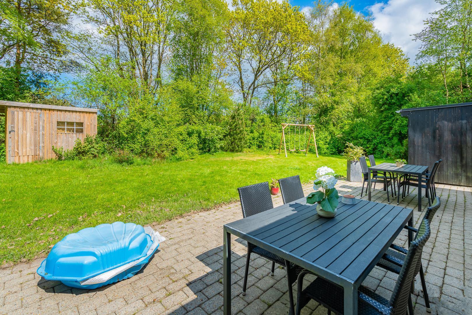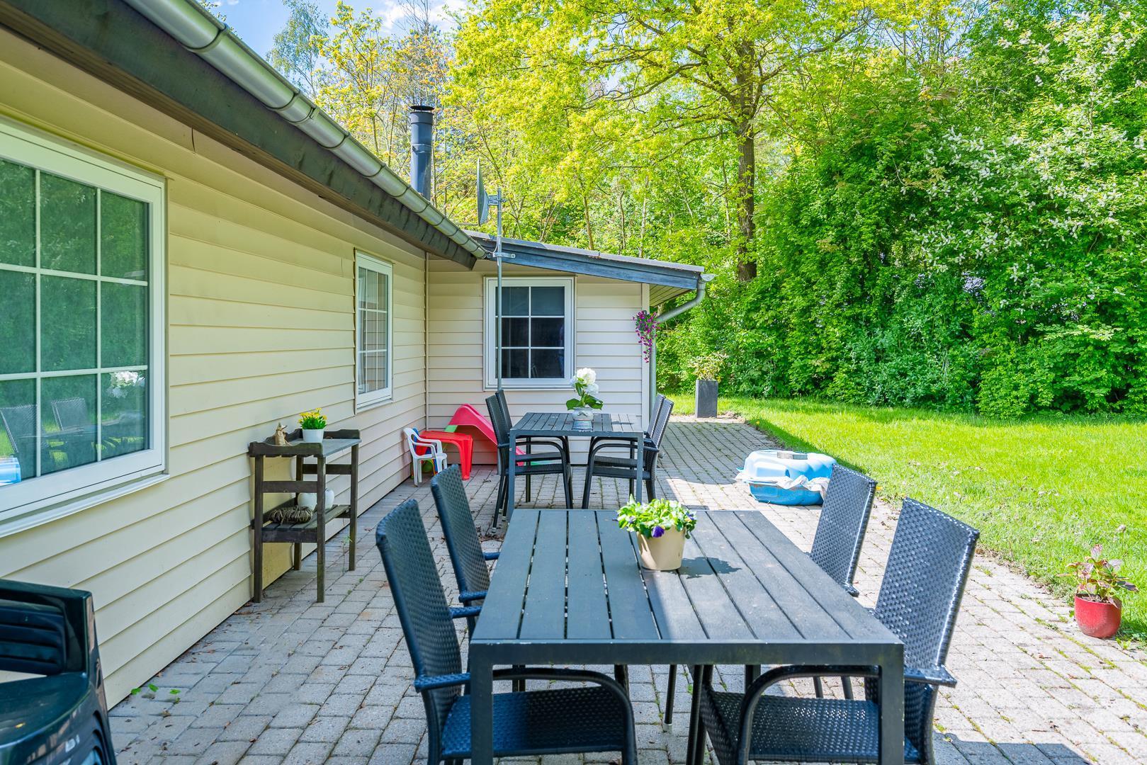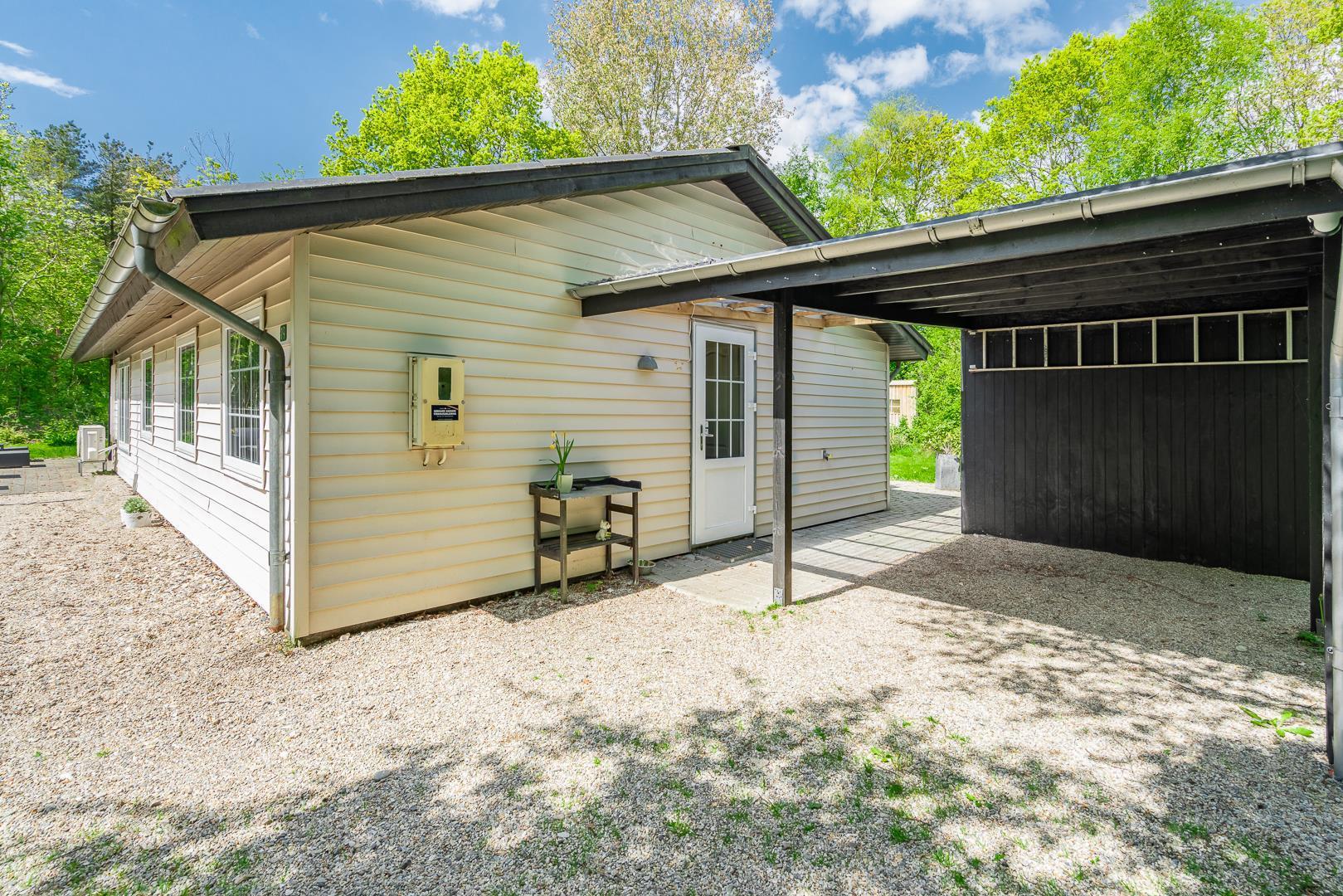 Familievenligt og hyggeligt indrettet sommerhus med 2 nyrenoverede badeværelser til sæson 2024, beliggende på en stor og ugenert naturgrund for enden af blind grusbelagt vej på adressen Hybenvangen 19, Jegum Ferieland. Praktisk indrettet køkken i åben forbindelse med stuen, hvor i finder brændeovn og der er opsat klimaanlæg. Dejligt spisehjørne hvorfra der er direkte udgang til flere delvis overdækkede og afskærmede terrasser. På grunden findes der mange aktiviteter for de mindste og der er god plads til boldspil.