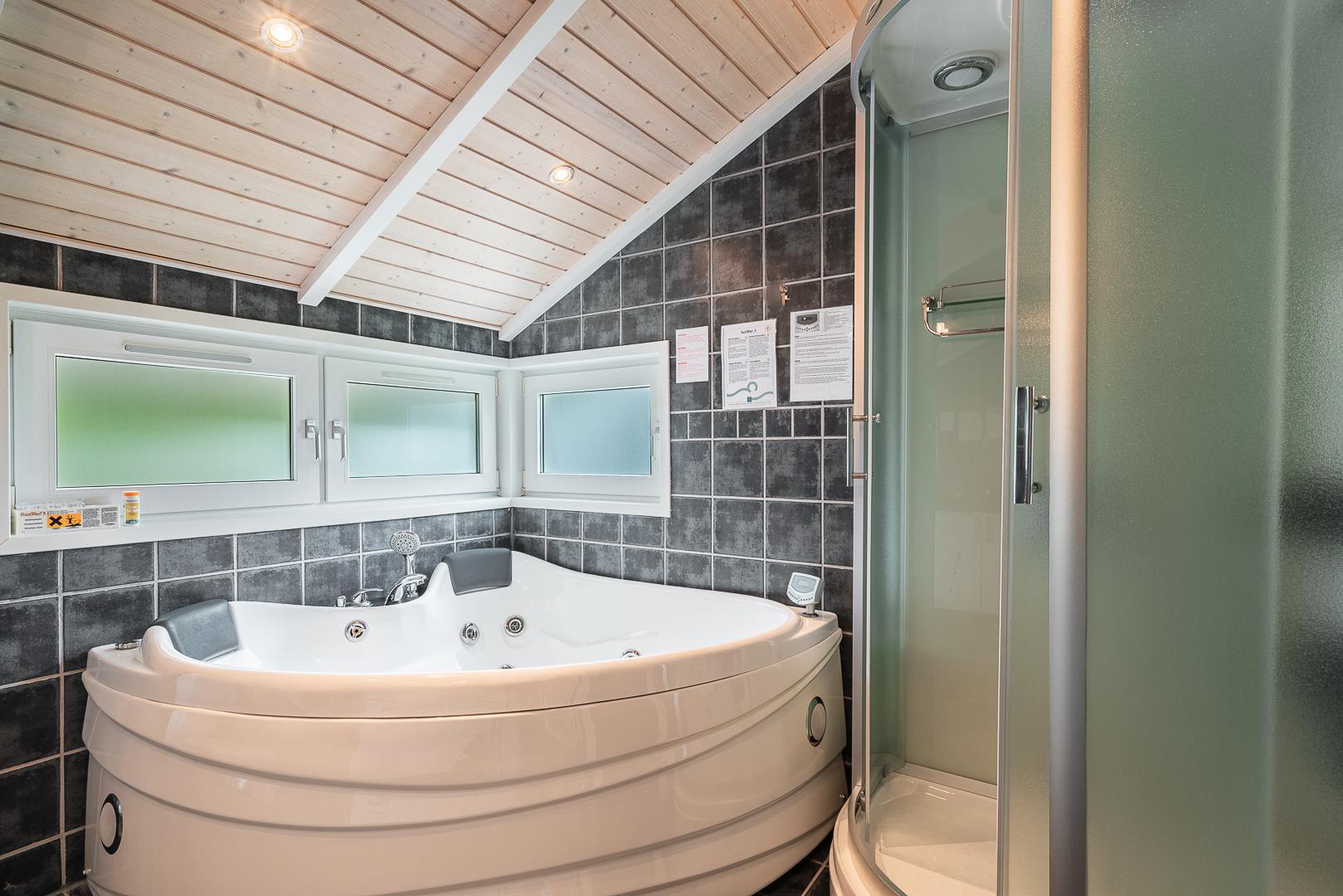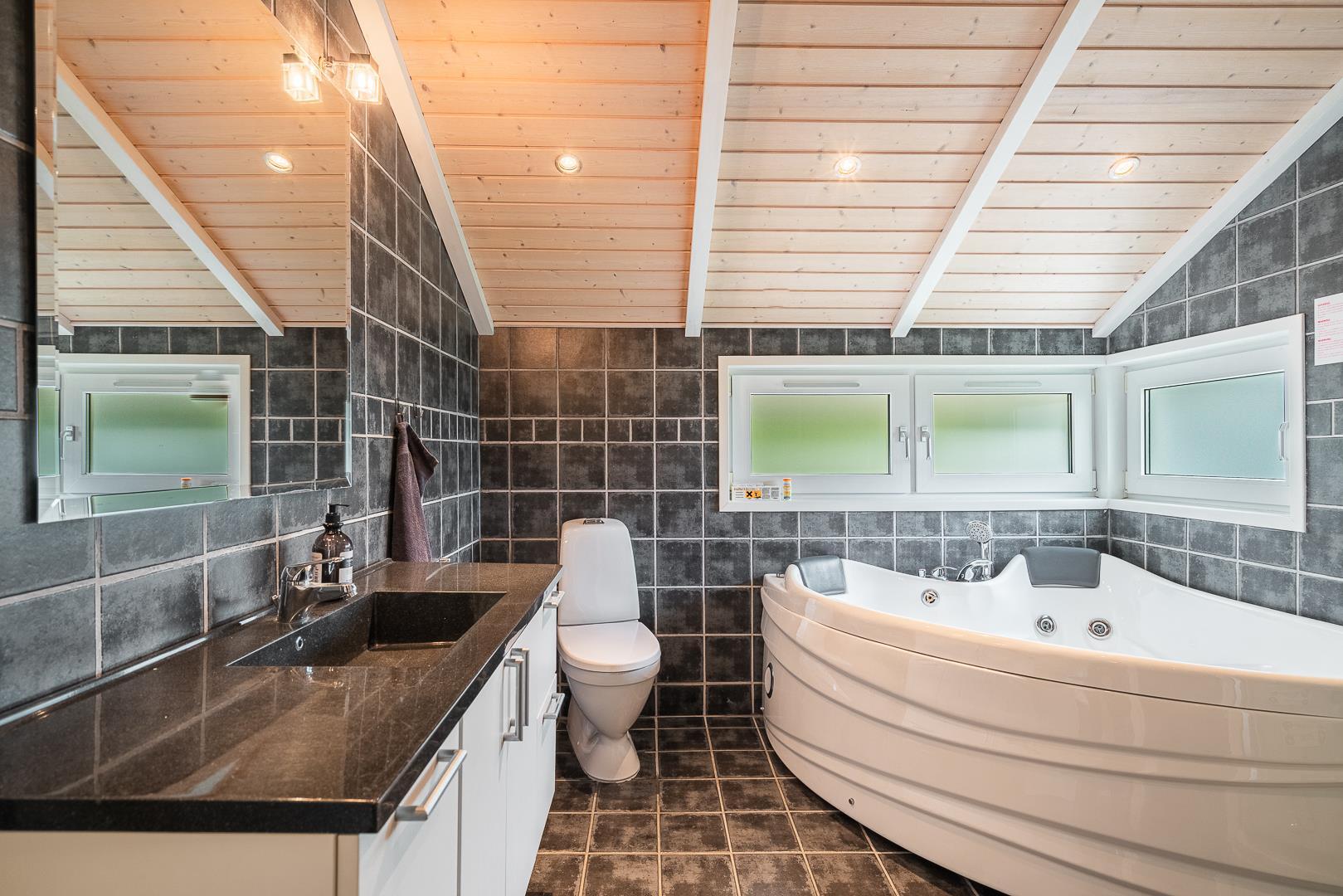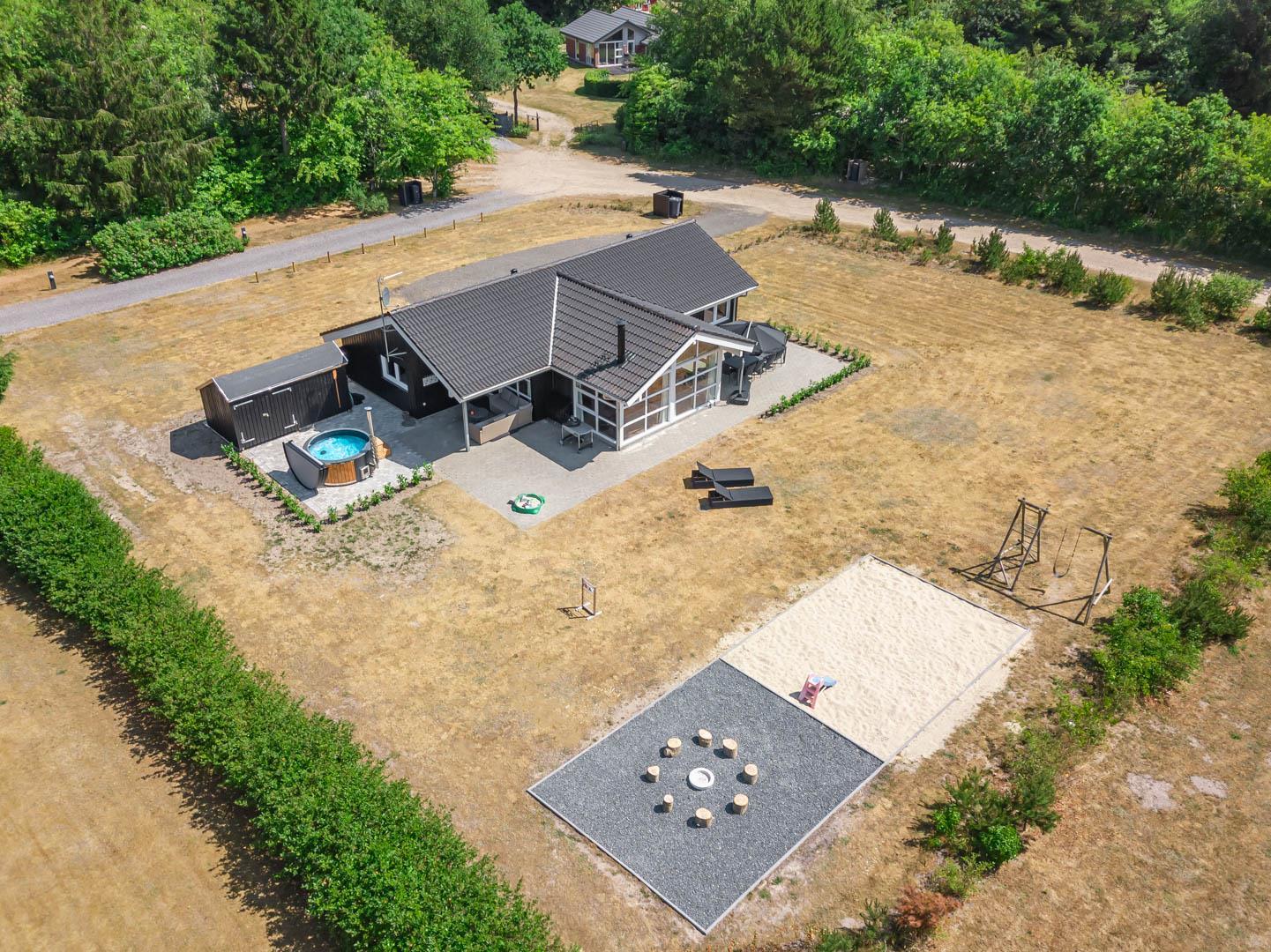 Som prikken over i’et finder I husets udendørs spa. Her kan I læne jer tilbage i det varme vand under åben himmel og nyde stilheden – den perfekte afslutning på en dejlig feriedag.