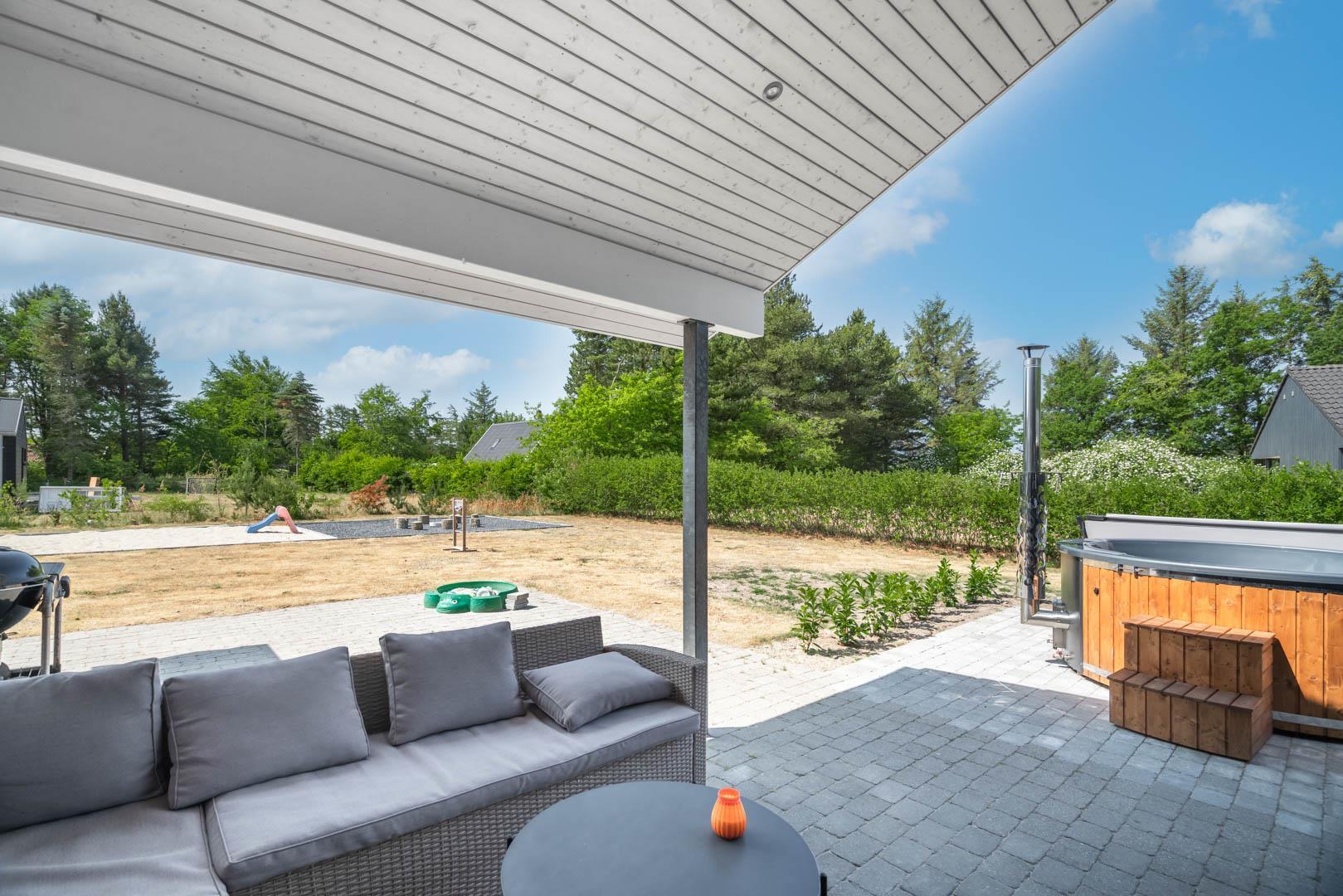 Skøn terrasse, legeredskaber og udendørs spa