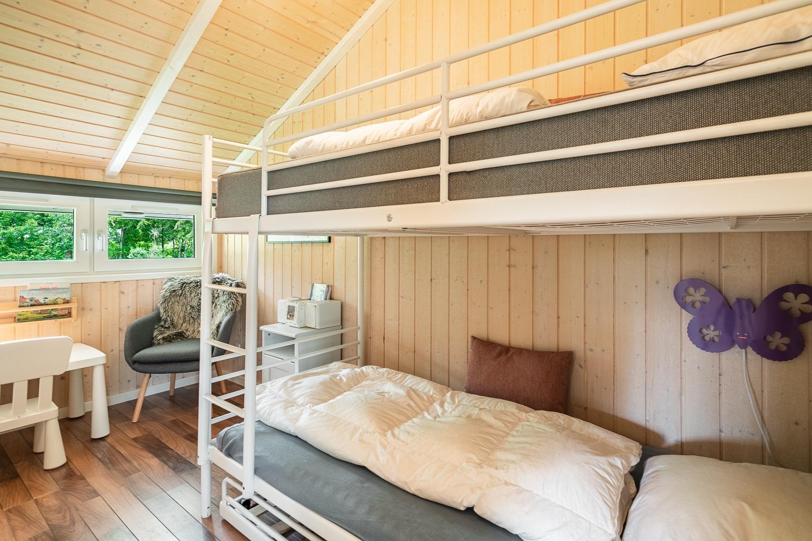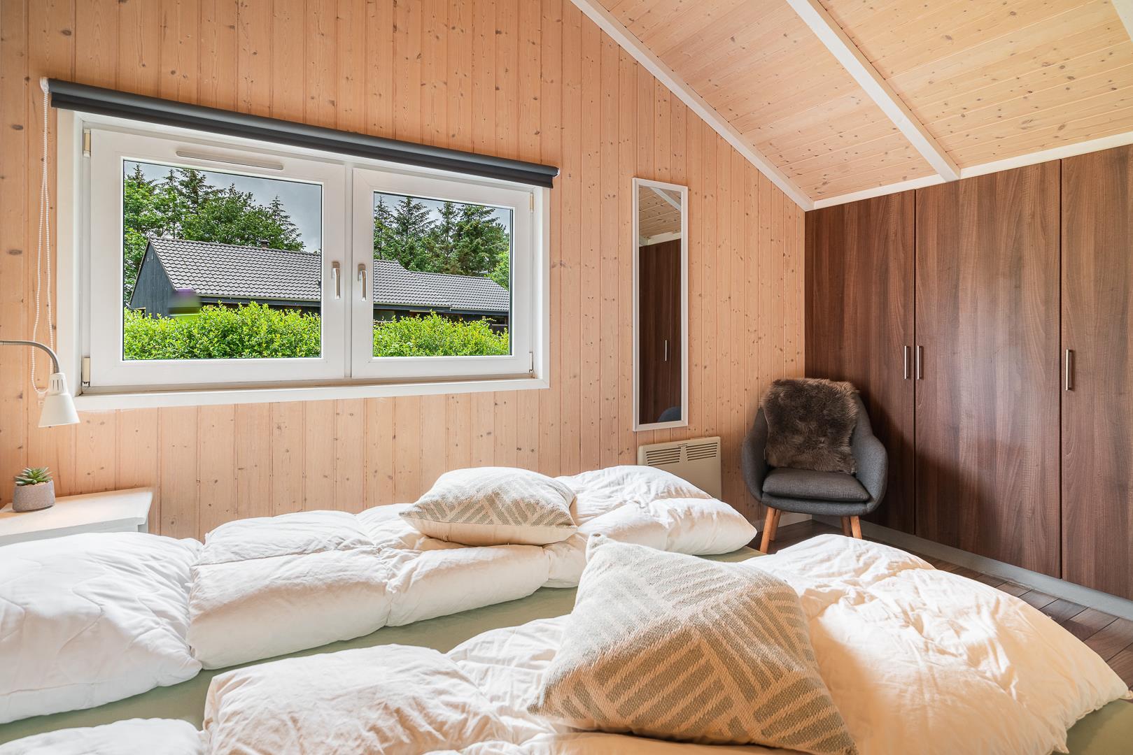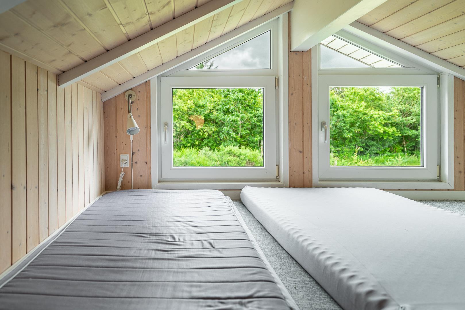 Sommerhuset rummer 4 soveværelser samt en hyggelig hems, som især er et hit blandt børnene. Derudover er der 2 badeværelser med gulvvarme, hvilket giver ekstra komfort – også på de kølige morgener.