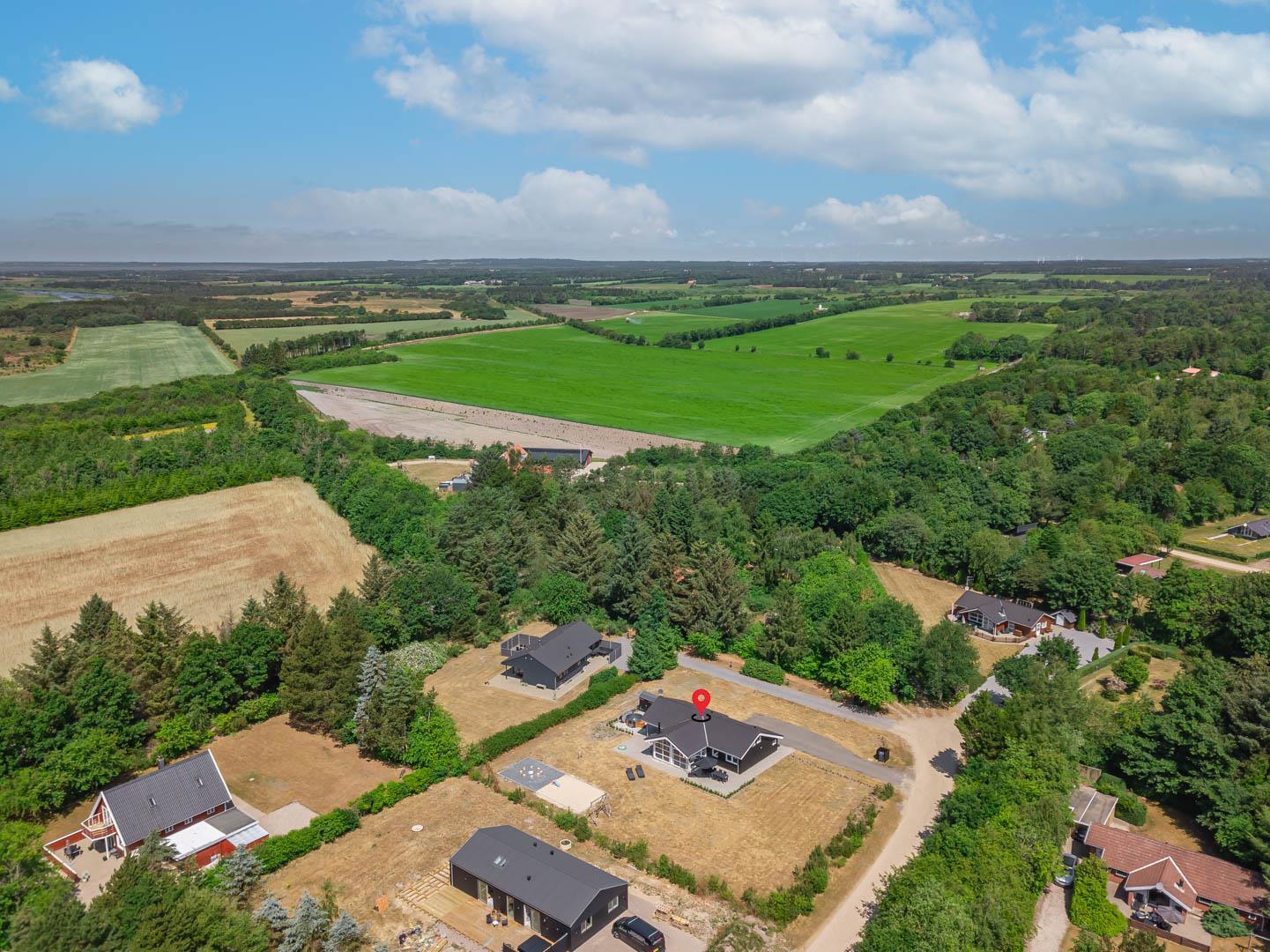 Vesterhavet og de brede sandstrande ligger omkring 11 kilometer væk og indbyder til badeture, lange gåture langs vandet og ægte vestjysk feriestemning.